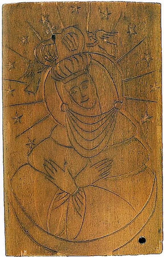 Wcześniej jednakże, 28.ii.1940 r., w dniu urodzin syna, Henryk Witold Gorzechowski, plastyk, malarz i rysownik, wręczył mu niewielką (14.8×9.4 cm) płaskorzeźbę - w wyciętym z pryczy kawałku deseczki - Matki Bożej. Wizerunek nawiązywał do Matki Bożej Ostrobramskiej (o czym świadczą złożone na piersi ręce Madonny). Koronę podtrzymywały aniołki. Miał ręce też wyrytą datę powstania…