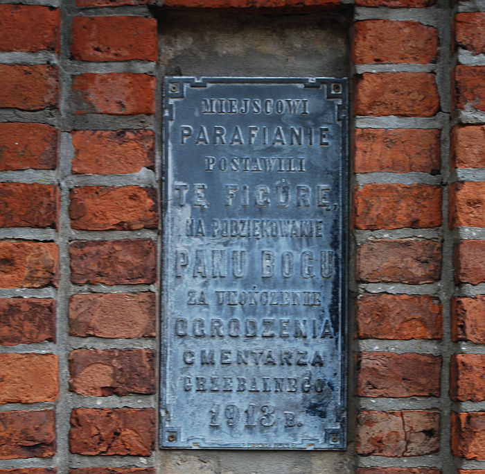 Ogrodzenie, o którym mowa, z czerwonej cegły, ukończono w 1913 r., tuż przed I wojną światową. W dziękczynieniu w środku cmentarza, na głównej alei, wystawiono okolicznościowy krzyż. Musiał się on znajdować w najstarszej części grzebalnej, bowiem poza grobowcem hrabiów Potulickich wszystkie nagrobki z XIX w. znajdują się w okolicy tegoż krzyża.