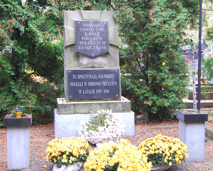 W części frontowej cmentarza znajduje się pomnik i groby kilku żołnierzy, którzy polegli w czasie II wojny światowej. Warto wymienić (i zapamiętać) ich nazwiska i znane szczegóły życia i śmierci:
