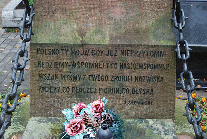 Patriotycznych śladów tęsknoty za Polską i odwagi walce o nią, a później w jej obronie, jest na cmentarzu zresztą więcej. Na pięknym, delikatnym nagrobku Zygmunta Bełkowskiego z 1922 r., zwieńczonym orłem, znajdujemy taki napis: