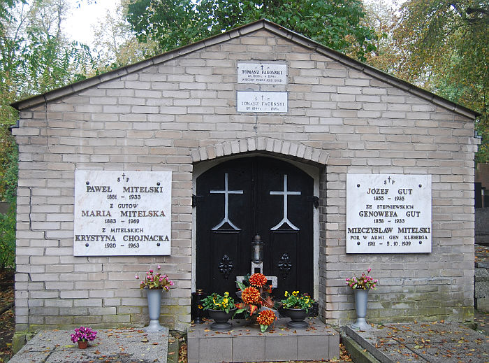 Na ścianach kapliczki, gdzie wmurowana jest tablica wspomnianego Tomasza Fagońskiego, znajduje się również epitafium Mieczysława Mitelskiego, porucznika w armii gen. Kleeberga. Podana jest data śmierci – 5 października 1939 r. Symboliczna, i dziwna! to data, to wszak na dzień przed poddaniem Samodzielnej Grupy Operacyjnej „Polesie” (taka była nazwa jednostek Kleeberga) niemieckiemu Wermachtowi z powodu braku amunicji i zaopatrzenia! Czyżby człowiek ten zmarł z ran odniesionych podczas walk bohaterskiego generała z niemieckimi i sowieckimi (m.in. pod Jabłoniem i Milanowem) najeźdźcami po czwartym rozbiorze Polski w 1939 r.? Tablica została wystawiona w czasach komunistycznych, gdy lokalni zdrajcy nie dozwalali na jakiekolwiek wzmianki o wojnie polsko-sowieckiej z tego pamiętnego roku…
