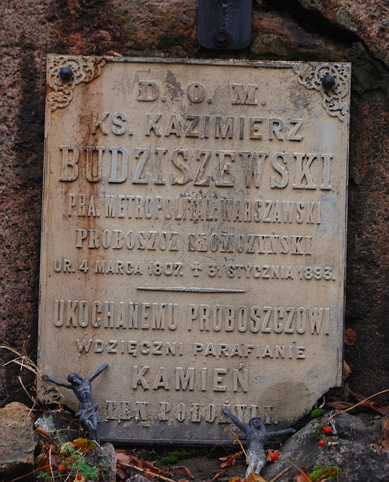 Ciekawym przyczynkiem do sztuki kamieniarskiej XIX w. jest kamień pamiątkowy Mikołaja i Tekli Budziszewskich, najprawdopodobniej rodziców długoletniego pasterza kościoła słomczyńskiego, ks. prałata Kazimierza Budziszewskiego (proboszcz 1844-1893), którego grób znajduje się zaraz obok. Ledwie widoczny napis wskazuje na rok 1852 jako rok wykucia napisu. Wydaje się, że w owych czasach prosty polski kamień stanowił jeden z podstawowych materiałów konstrukcyjnych nagrobków (w nekropolii znajduje się jeszcze kilka takich charakterystycznych kamieni, m.in. Anieli Łepkowskiej, Józefa Czasaka)…