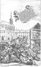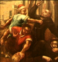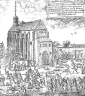 Jego zwłoki zrzucono przez otwór w suficie kopuły świątyni na środek posadzki głównej nawy kościoła.
