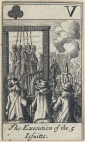 Następnego dnia Scroggs skazał wszystkich pięciu na śmierć. Karą wówczas było słynne powieszenie, rozpłatanie i ćwiartowanie (ang. hanged, drawn and quartered)…