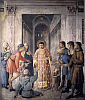 Na jego zebranie Wawrzyniec miał poprosić o kilka dni. W tym czasie rozdał majętność kościelną - na ile tylko starczyło mu czasu - ubogim. W wyznacznym dniu zgromadził wszystką biedotę Rzymu, którą wspierała gmina chrześcijańska, przed namiestnikiem, i oznajmił„Wieńce męczeńskie (Peristephanon)”, Aurelikusz Prudencjusz Klemens: