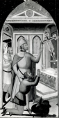 Nie udał się do domu. Zwolnił giermka i - według niektórych źródeł wraz z mordercą swego brata - skierował swe kroki do najbliższego miejscu zdarzenia klasztoru Zakonu świętego Benedykta (łac. Ordo Sancti Benedicti – OSB) – czyli benedyktynów - pw. św. Miniasza na Górze (wł. San Miniato al Monte), na sąsiadującym z wąwozem wzniesieniu, jednym z najwyższych w okolicy Florencji. Tam, w kościele – dzisiaj bazylice – którego budowę rozpoczęto w 1013 r., uklęknął przed malowanym wizerunkiem Krucyfiksu.