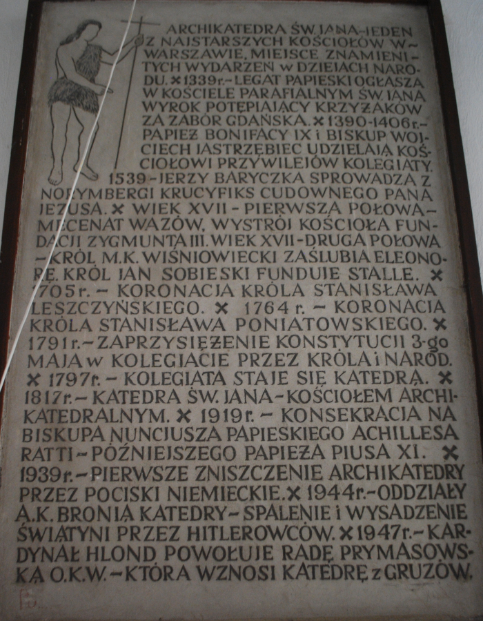 2.vi.1979 r. Jan Paweł II swoją pierwszą, wielką pielgrzymkę do Ojczyzny rozpoczął w katedrze pw. Męczeństwa św. Jana Chrzciciela od uklęknięcia przed Chrystusem w Swym Warszawskim Krucyfiksie.