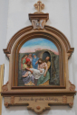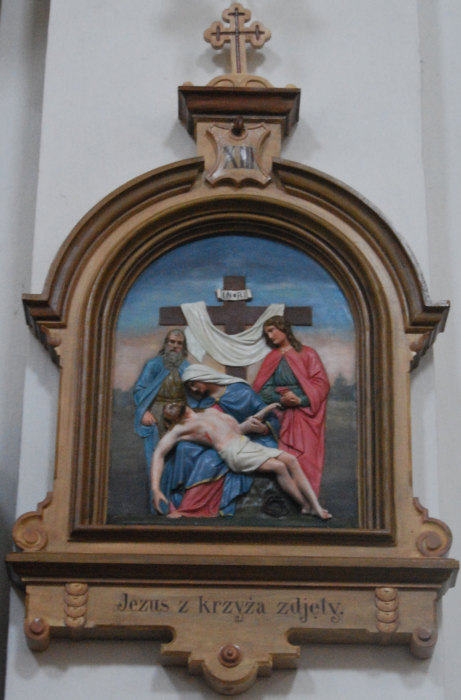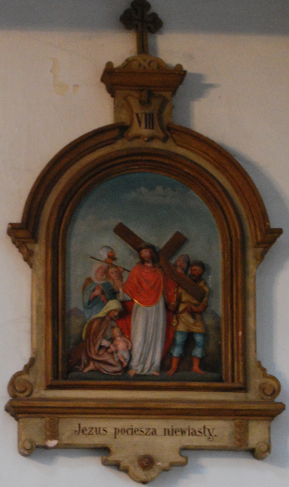 Nasza Droga Krzyżowa pochodzi - jak się wydaje - z XIX w. Ponieważ podobna znajduje się w kościele w pobliskim Mirkowie, należącym ówcześnie do majątku Obory hr. Potulickich uzasadnione wydaje się przypuszczenie, iż obie zamówiono i nabyto, u tego samego artysty, mniej więcej w tym samym czasie.