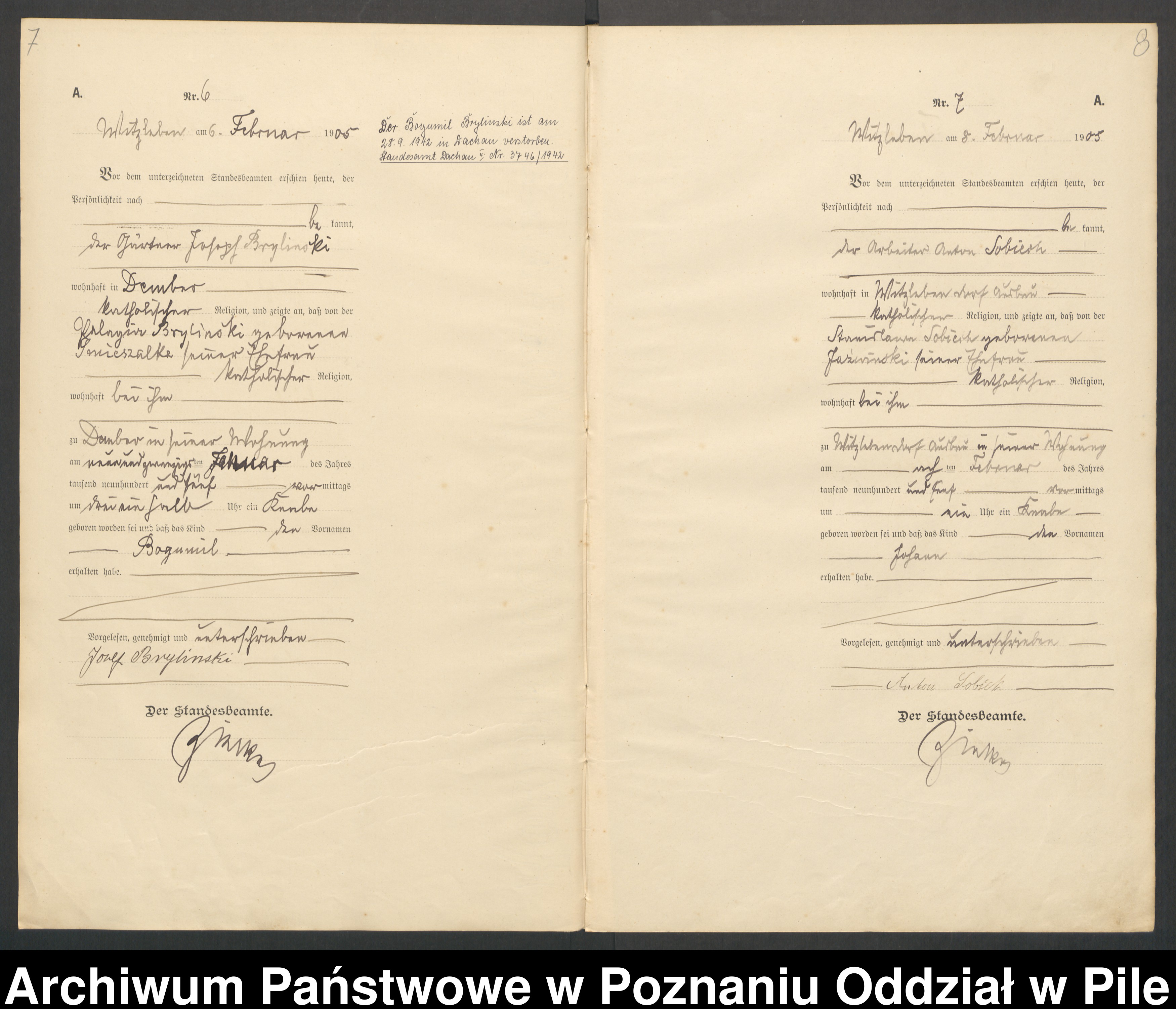 29.01.1905Birth certification on: