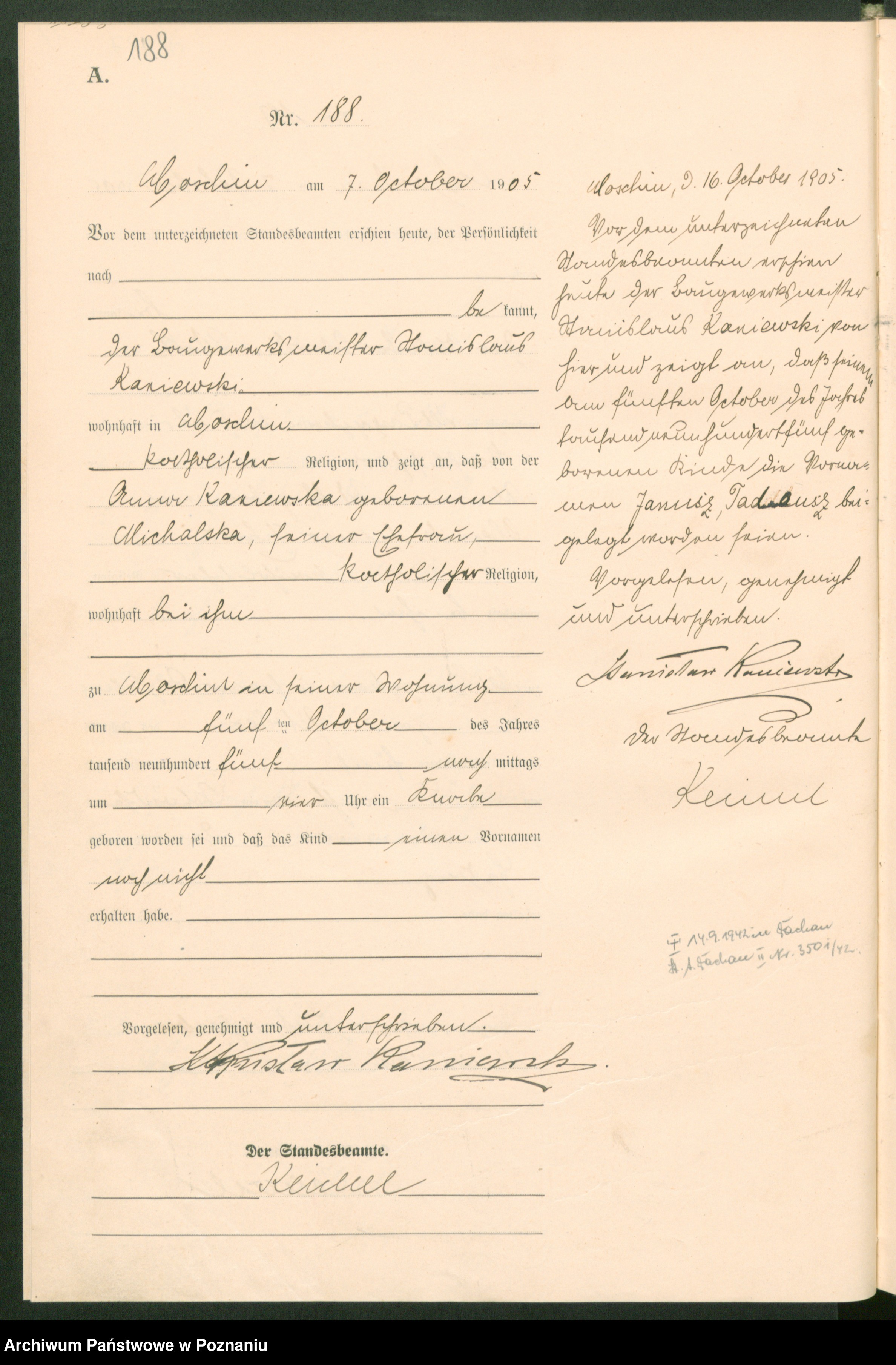 05.10.1905Birth certification on: