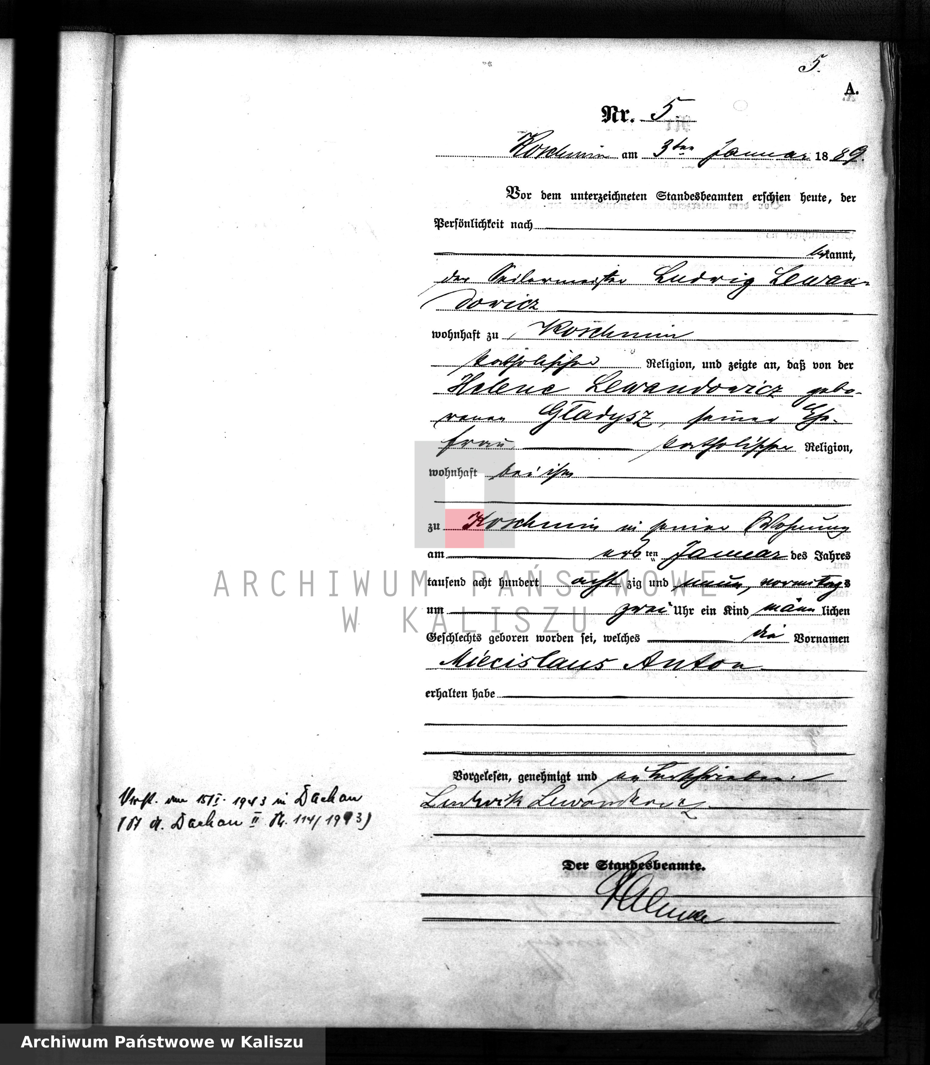Reichsgau Wartheland: After the Polish defeat in the 09.1939 campaign, which was the result of the Ribbentrop‐Molotov Pact and constituted the first stage of World War II, and the beginning of German occupation in part of Poland (in the other, eastern part of Poland, the Russian occupation began), the Germans divided the occupied Polish territory into five main regions (and a few smaller). The largest one was transformed into Germ. Generalgouvernement (Eng. General Governorate), intended exclusively for Poles and Jews and constituting part of the so‐called Germ. Großdeutschland (Eng. Greater Germany). Two were added to existing German provinces. From two other separate new provinces were created. Greater Poland region was one of them, incorporated into Germany on 08.10.1939, by decree of the German leader Adolf Hitler (formally came into force on 26.10.1939), and on 24.01.1940 transformed into the Germ. Reichsgau Wartheland province, in which the law of the German state was to apply. The main axis of the policy of the new province, the territory of which the Germans recognized as the Germ. „Ursprünglich Deutsche” (Eng. „natively German”), despite the fact that 90% of its inhabitants were Poles, was Germ. „Entpolonisierung” (Eng. „Depolonisation”), i.e. forced Germanization. C. 100,000 Poles were murdered as part of the Germ. „Intelligenzaktion”, i.e. extermination of Polish intelligentsia and ruling classes. C. 630,000 were forcibly resettled to the Germ. Generalgouvernement, and their place taken by the Germans brought from other areas occupied by Germany (e.g. the Baltic countries, Bessarabia, Bukovina, etc.). Poles were forced to sign the German nationality list, the Germ. Deutsche Volksliste DVL. As part of the policy of „Ohne Gott, ohne Religion, ohne Priesters und Sakramenten” (Eng. „No God, no religion, no priest or sacrament”) most Catholic priests were arrested and sent to concentration camps. All schools teaching in Polish, Polish libraries, theaters and museums were closed. Polish landed estates confiscated. To further reduce the number of the Polish population, Poles were sent to forced labor deep inside Germany, and the legal age of marriage for Poles was increased (25 for women, 28 for men). The German state office, Germ. Rasse‐ und Siedlungshauptamt (Eng. Main Office of Race and Settlement) RuSHA, under the majesty of German law, abducted several thousand children who met specific racial criteria from Polish families and subjected them to forced Germanization, handing them over to German families. After the end of hostilities of World War II, the overseer of this province, the Germ. Reichsstatthalter (Eng. Reich Governor) and the Germ. Gauleiter (Eng. district head) of the German National Socialist Party, Arthur Karl Greiser, was executed. (more on: en.wikipedia.orgClick to attempt to display webpage