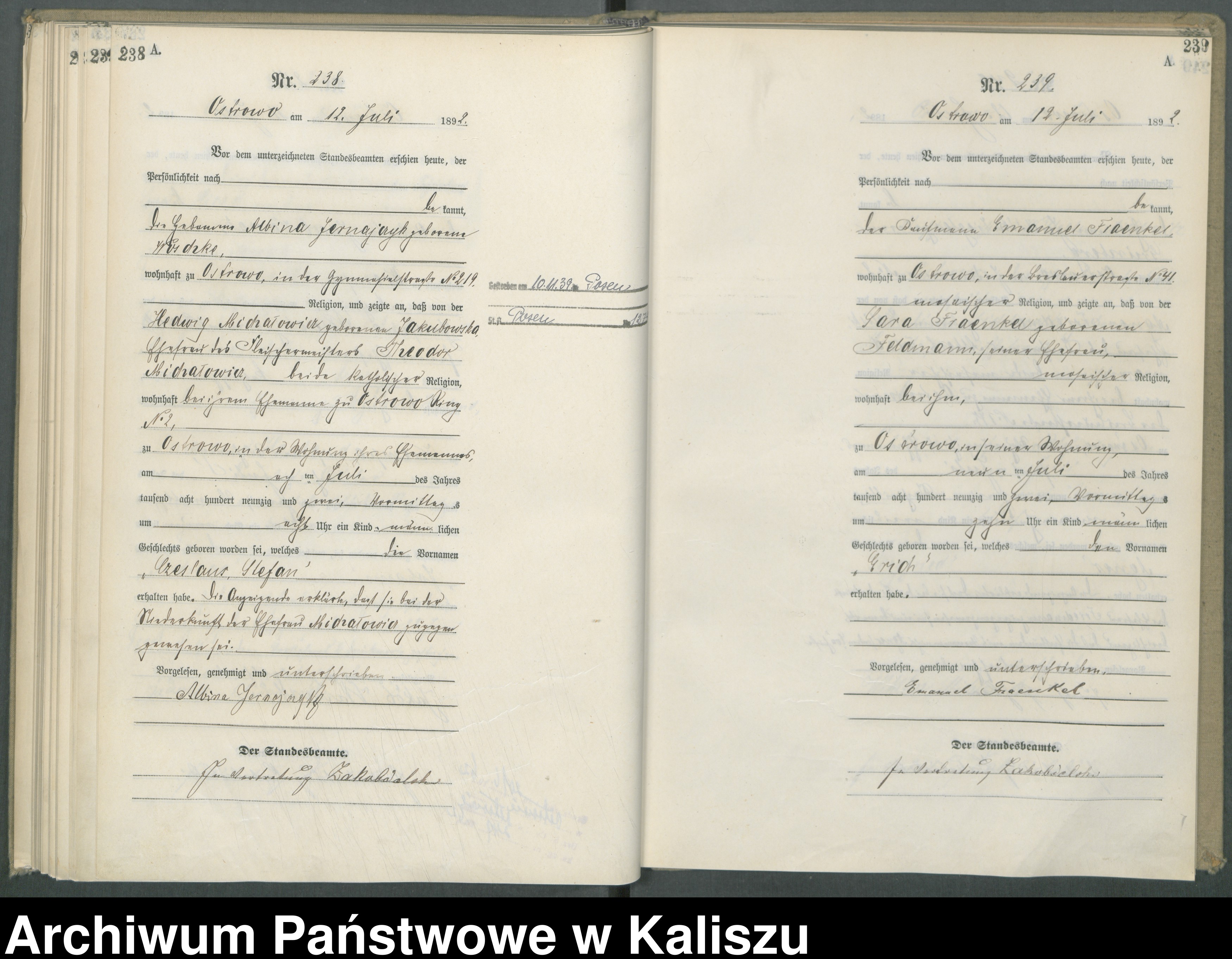 08.07.1892Birth certification on: