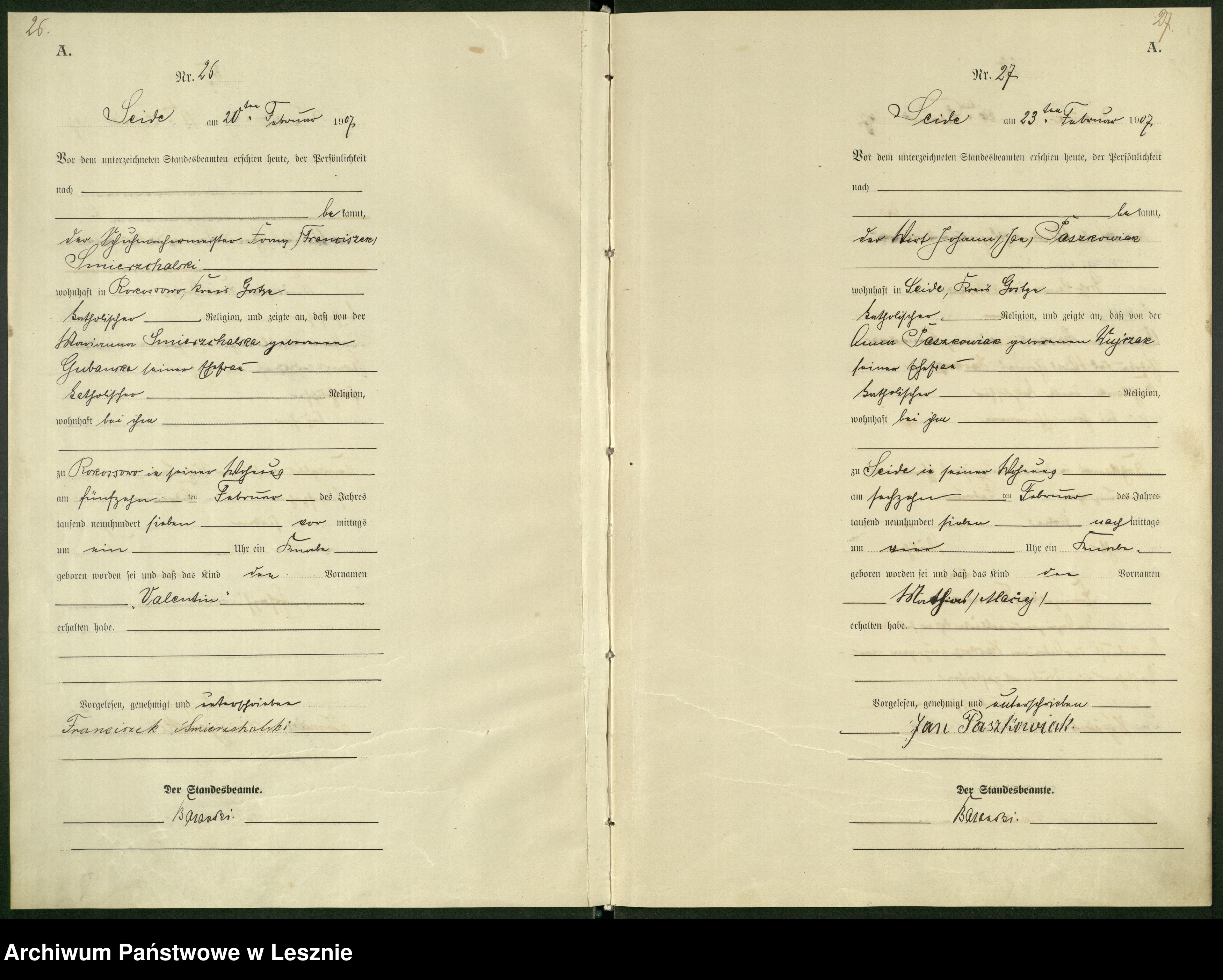 16.02.1907Birth certification on: