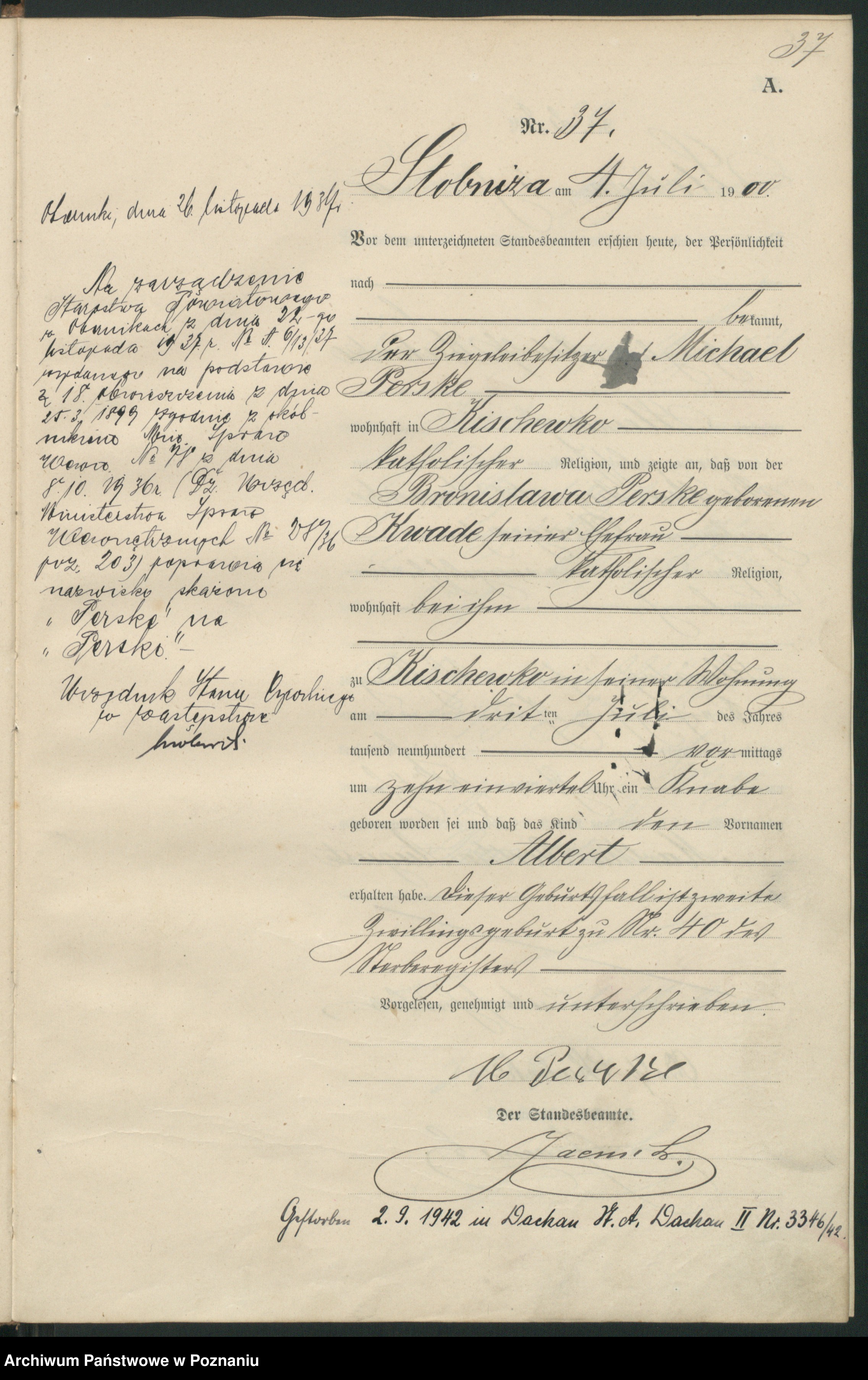 According to the death certificate No 3346/42, prepared in KL Dachau, the „honest” otherwise German „medical doctors” and formalists — and at the same time, unrivaled fairy tale spinners — noted that the cause of death was Germ. „Versagen von Herz und Kreislauf, bei Lungenentzündung” (Eng. „Heart and circulatory failure, due to pneumonia”).