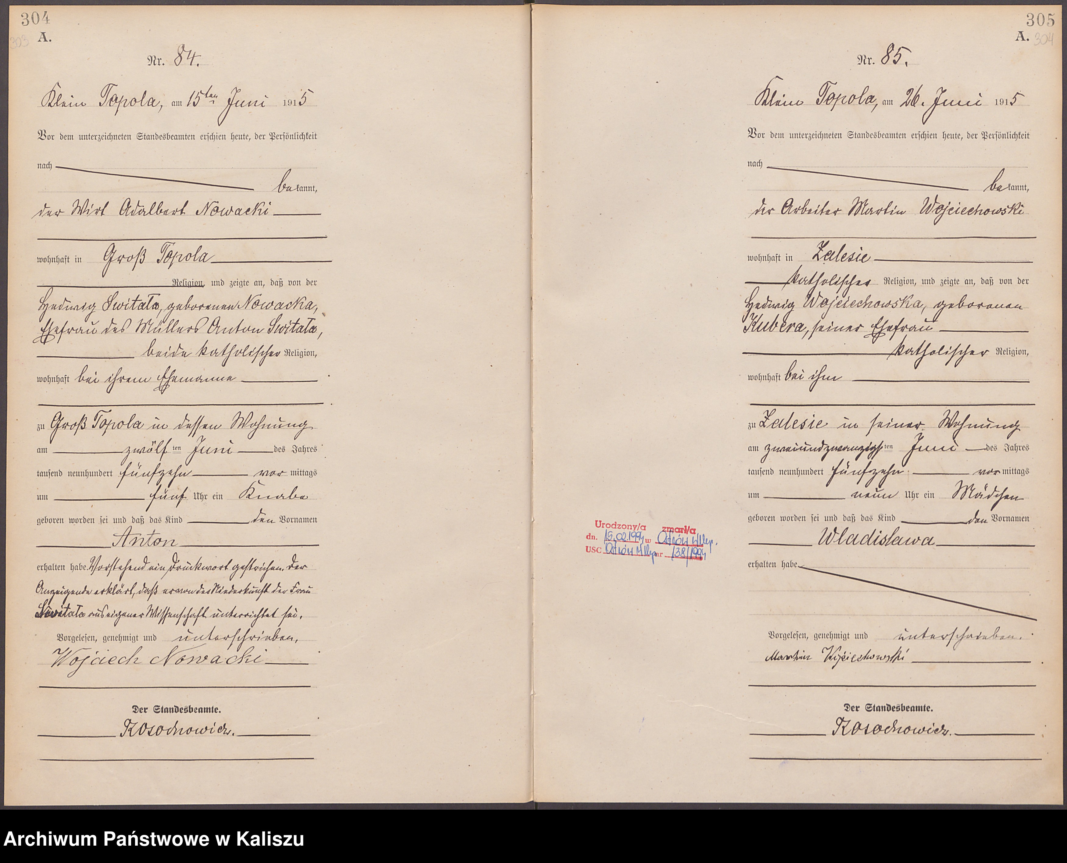 12.06.1915Birth certification on: