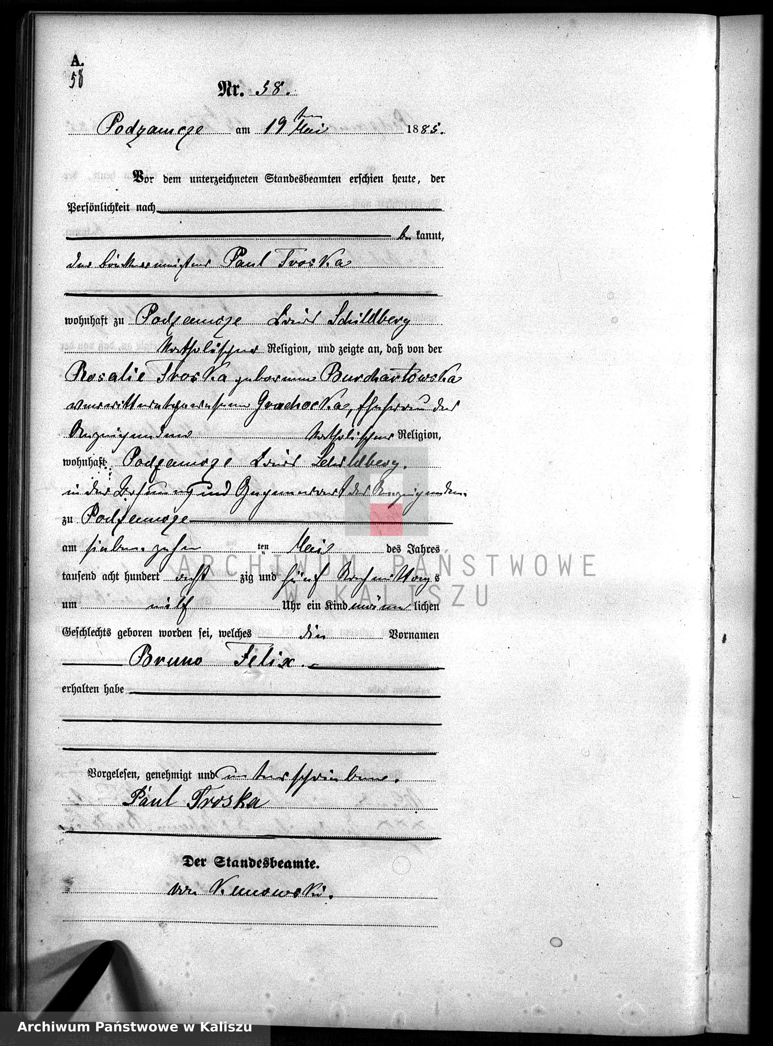 17.05.1885Birth certification on: