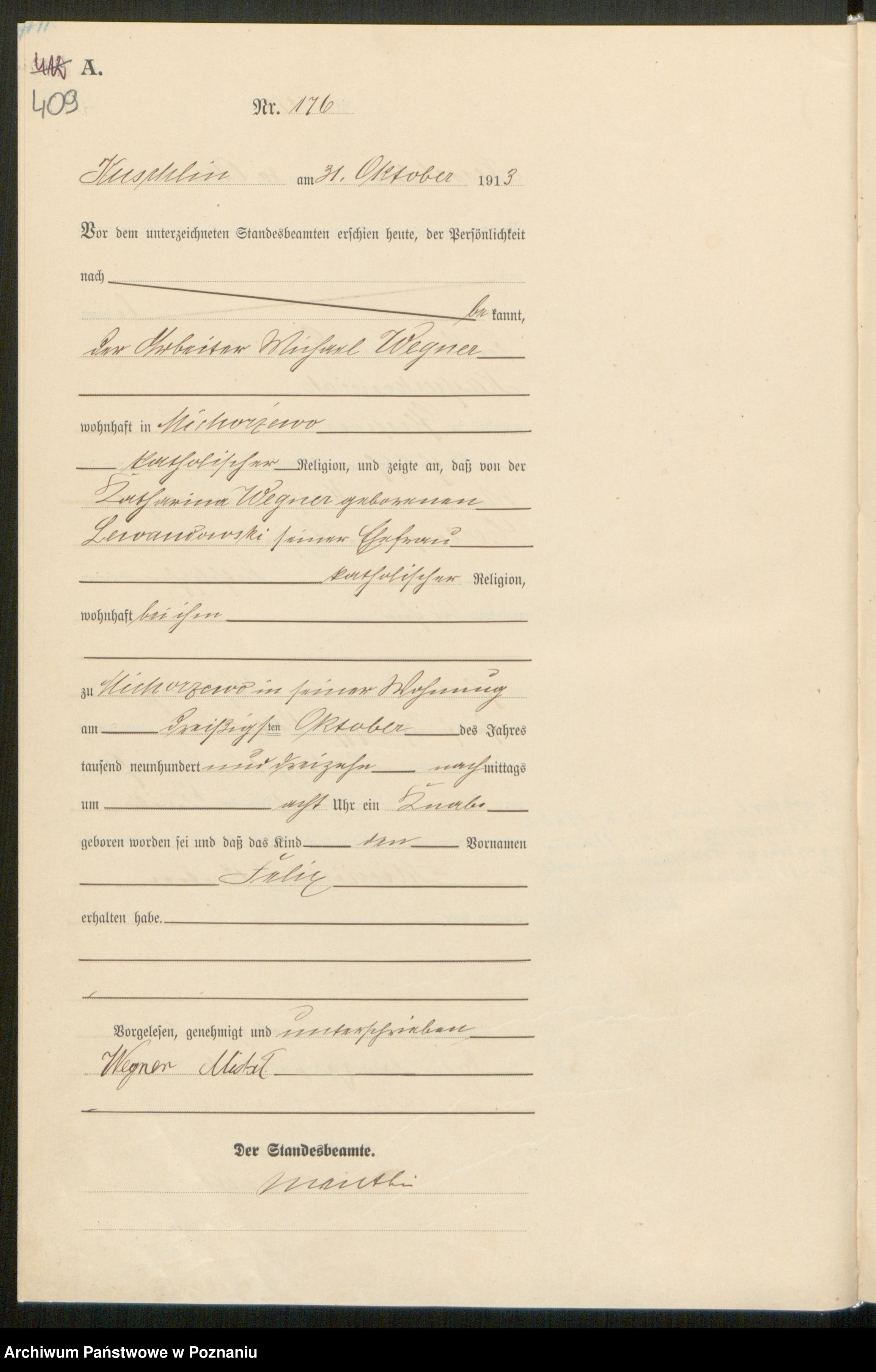 30.10.1913Birth certification on: