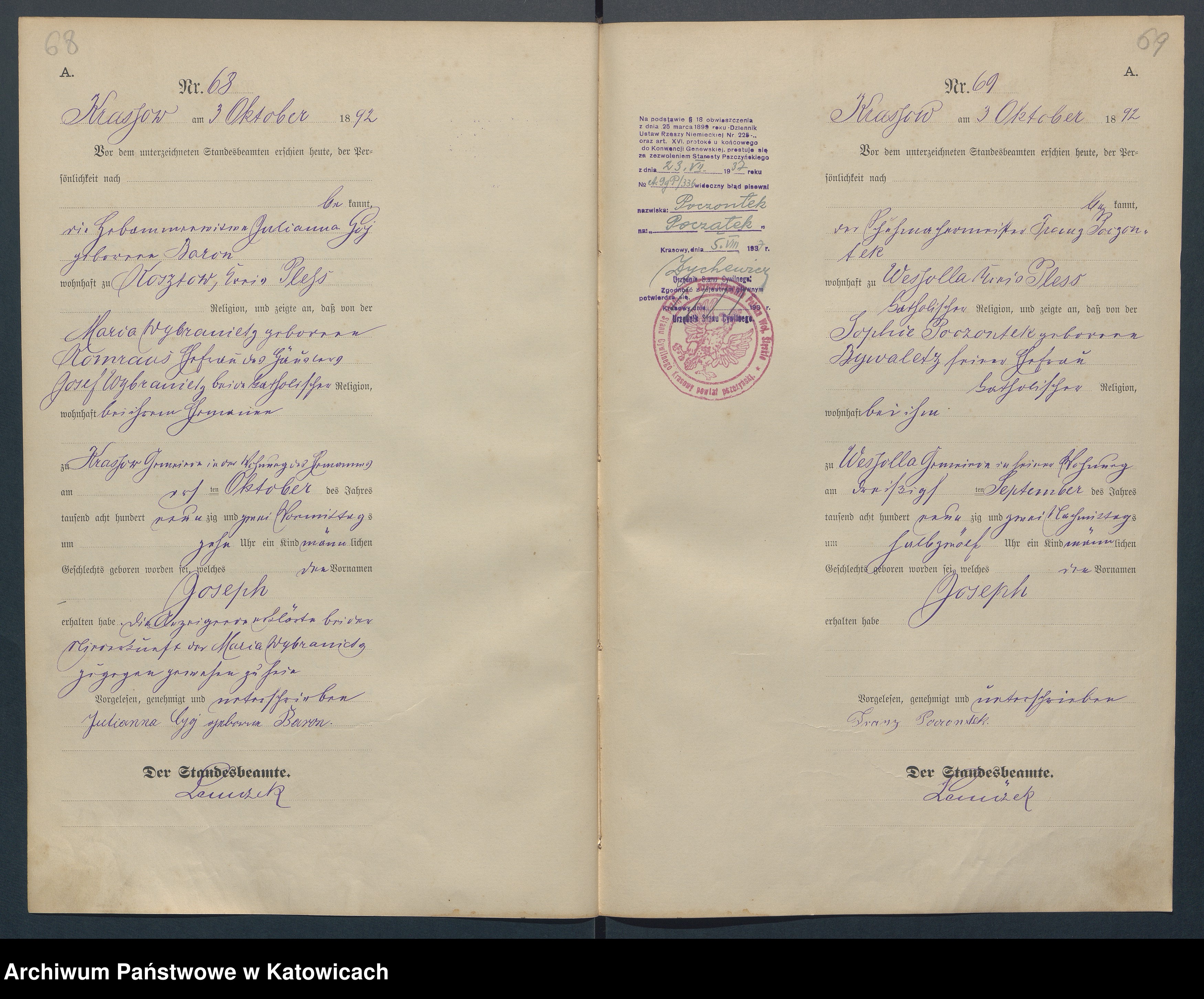 01.10.1892Birth certification on: