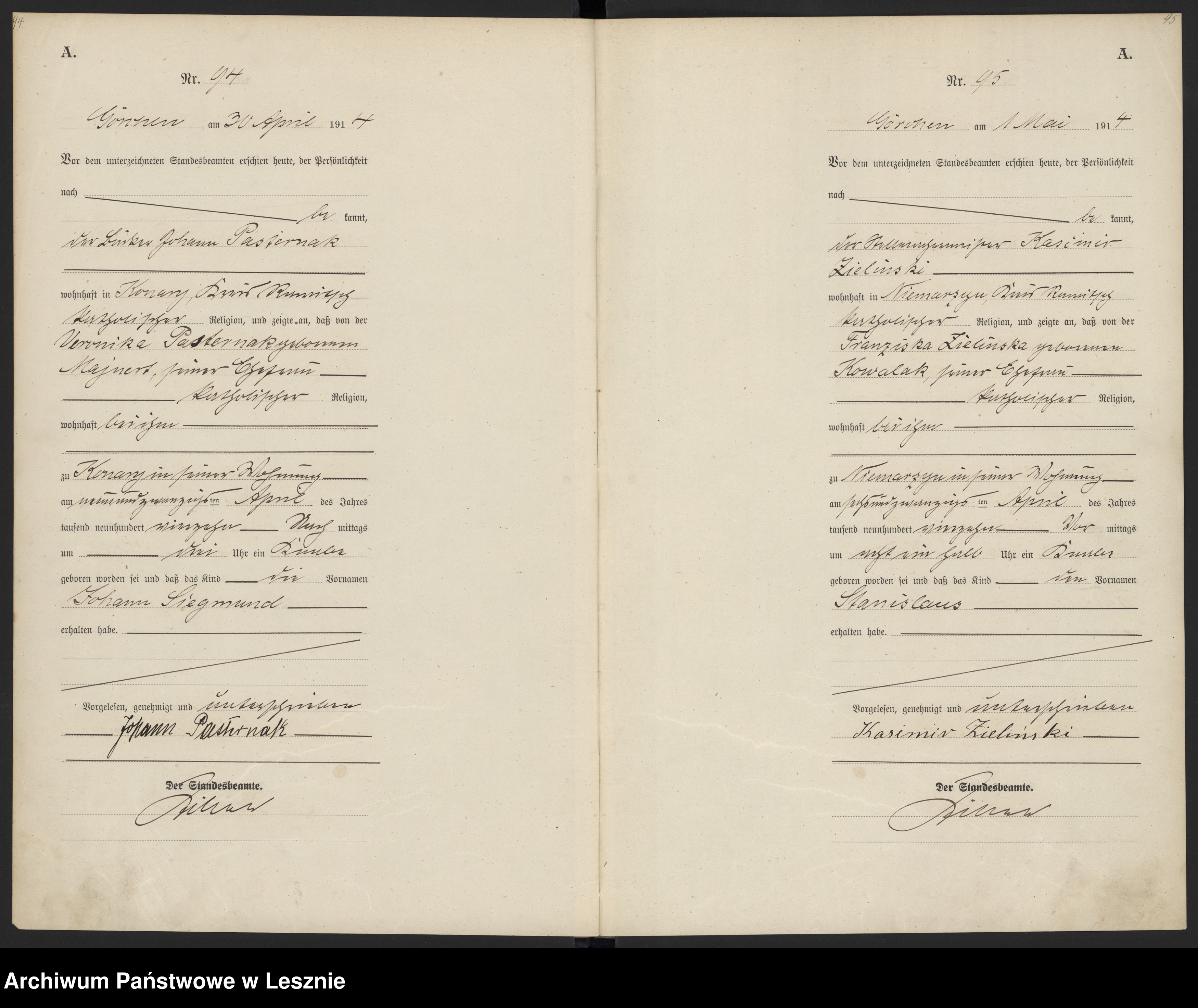 26.04.1914Birth certification on: