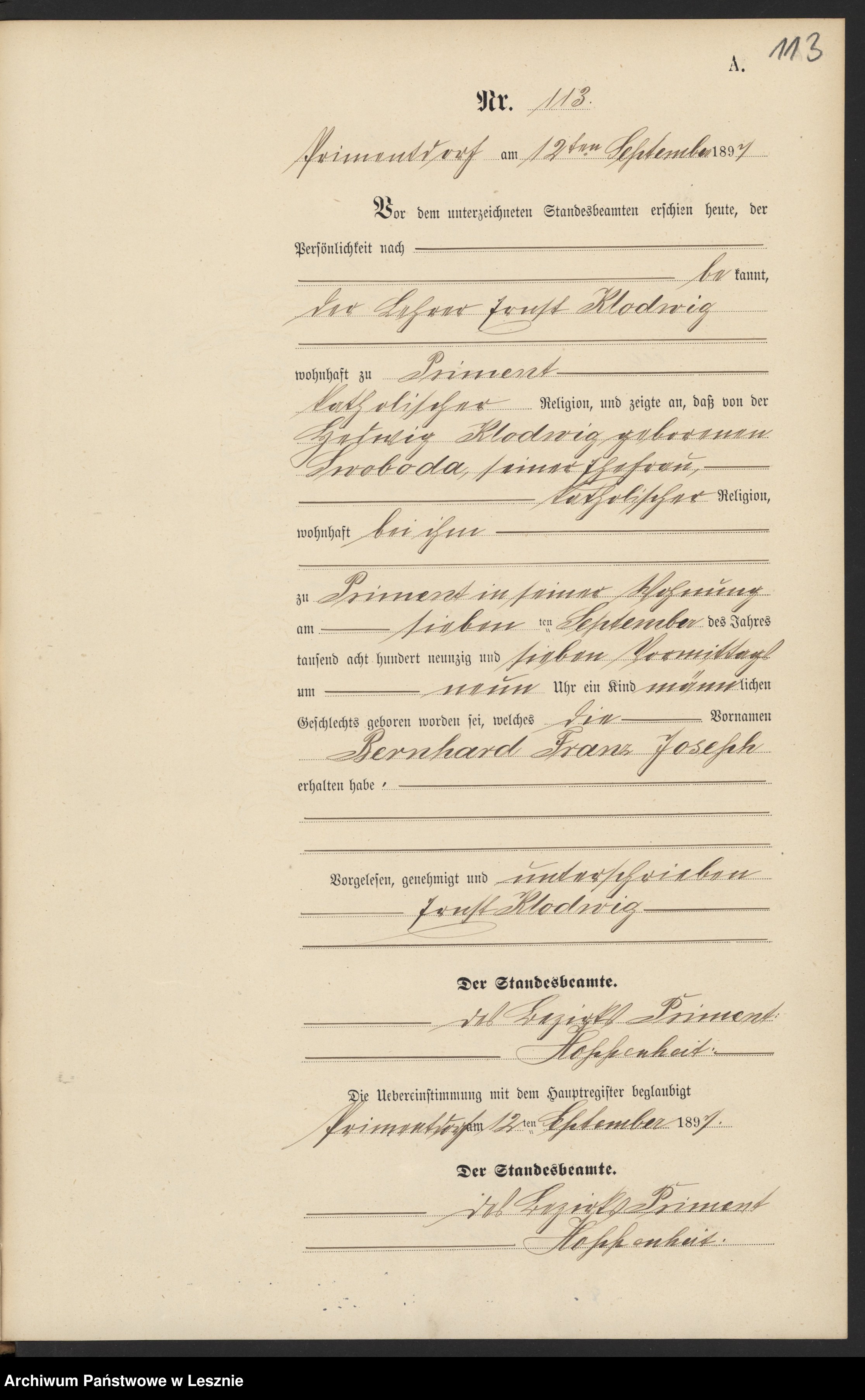 07.09.1897Birth certification on: