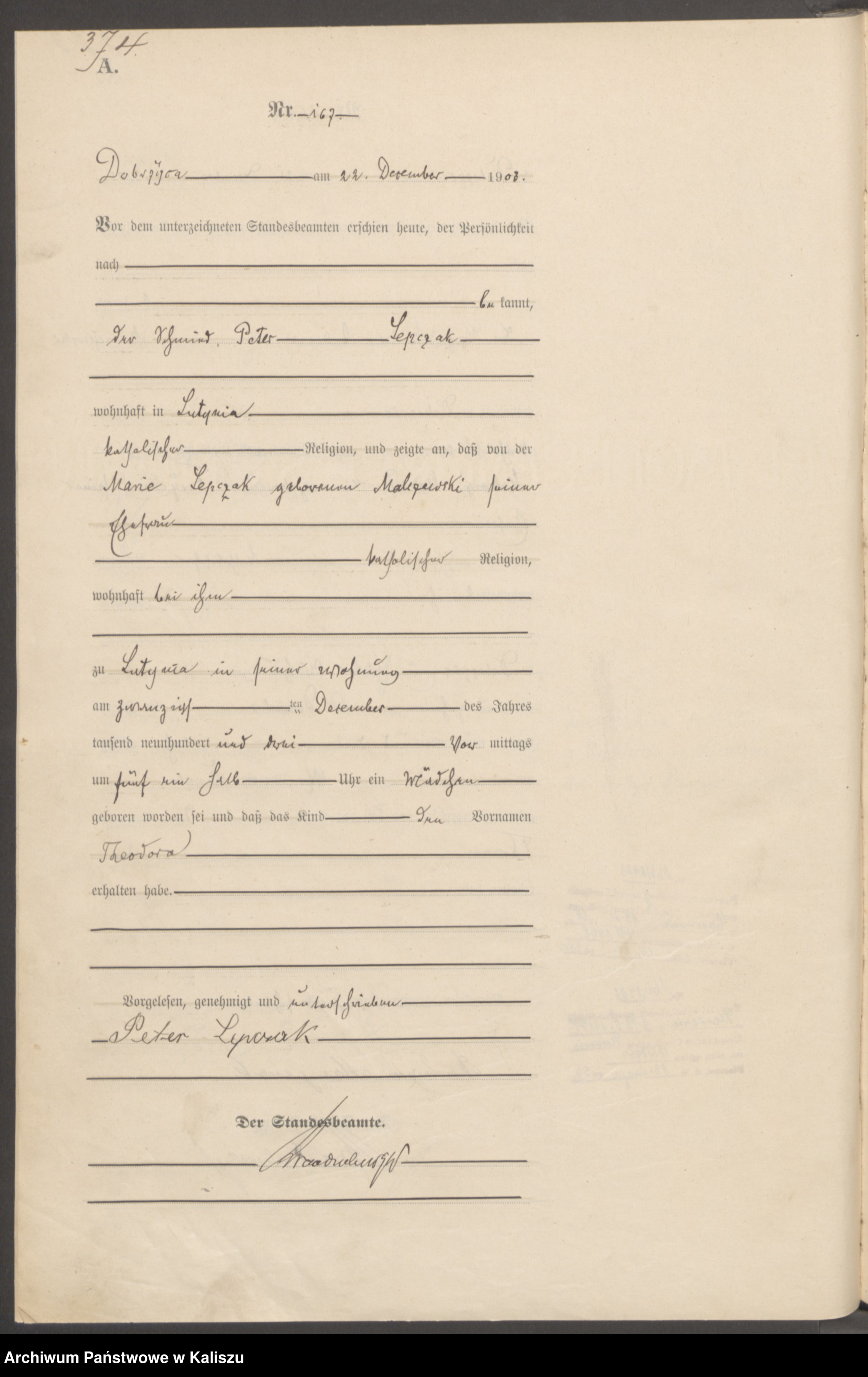 20.12.1903Birth certification on: