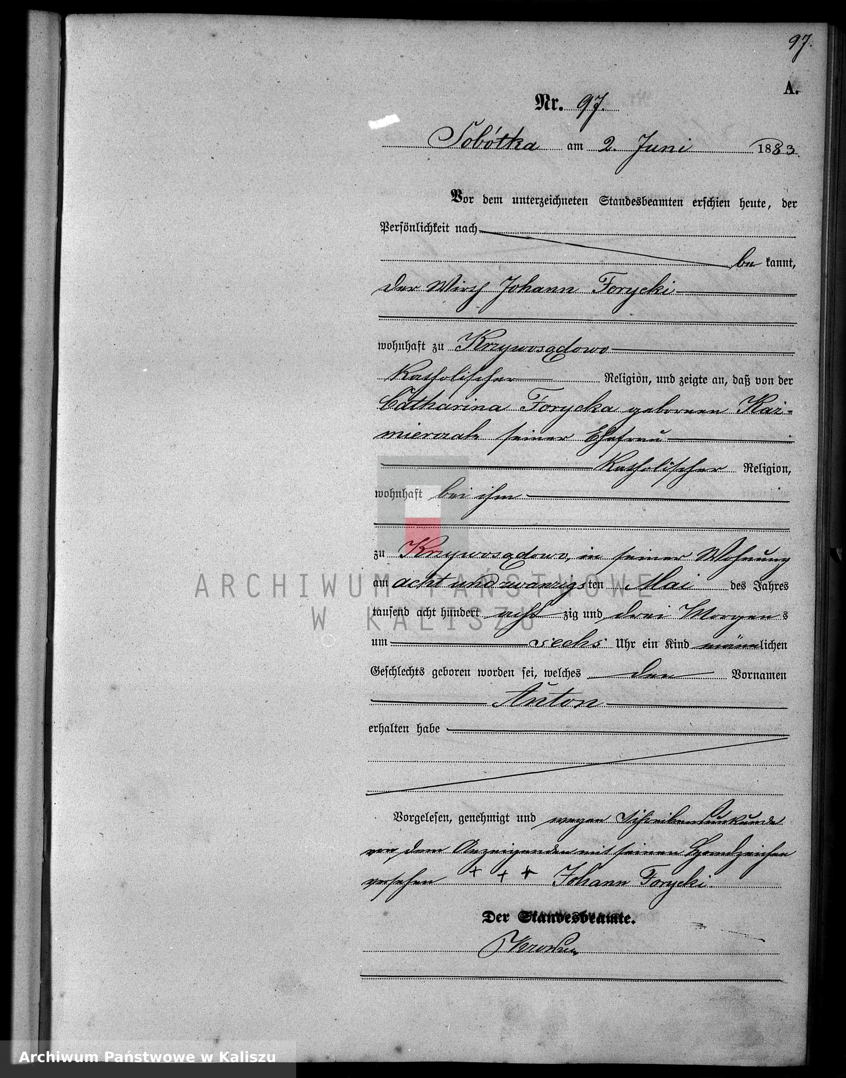 28.05.1883Birth certification on: