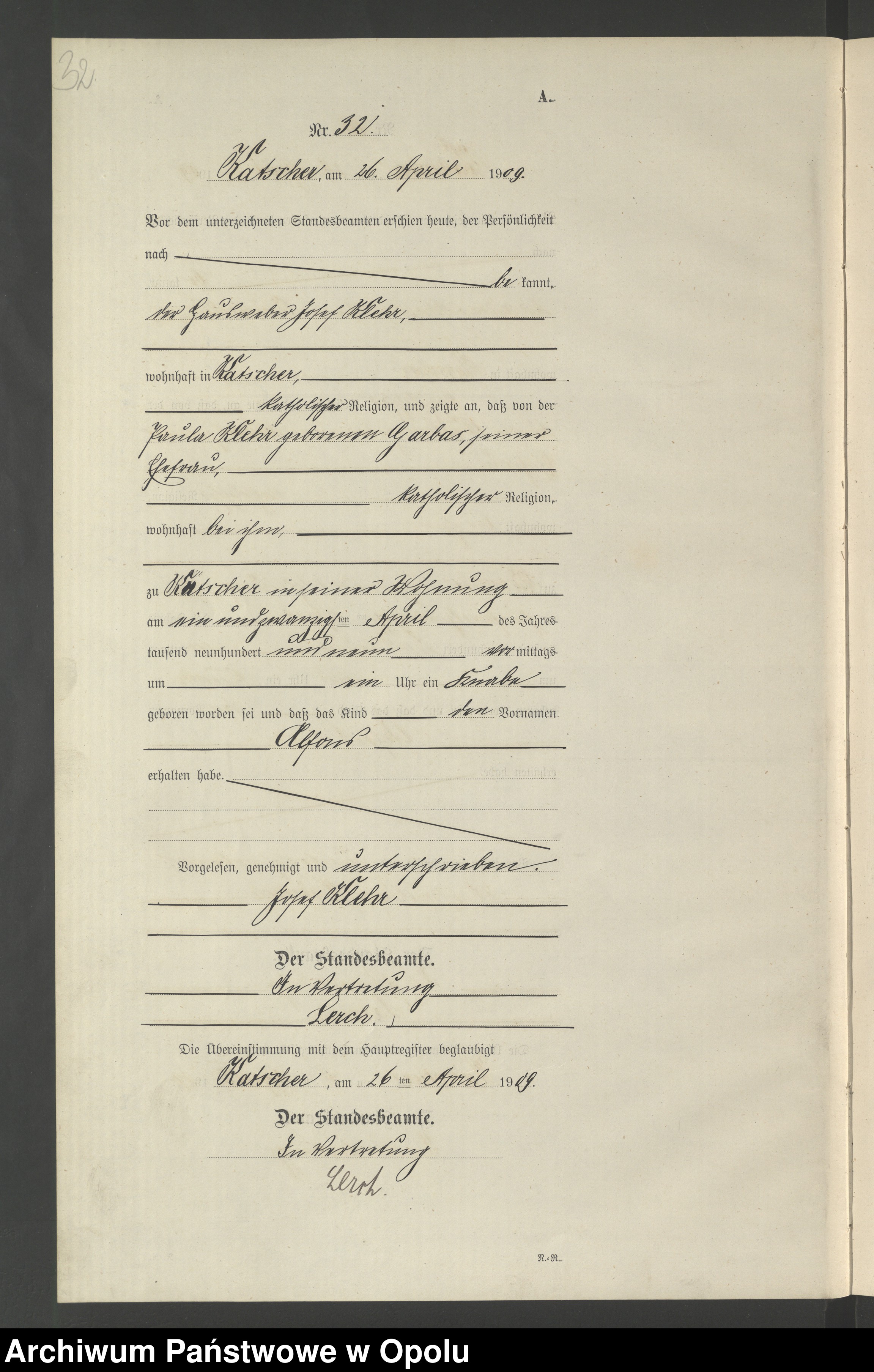 21.04.1909Birth certification on: