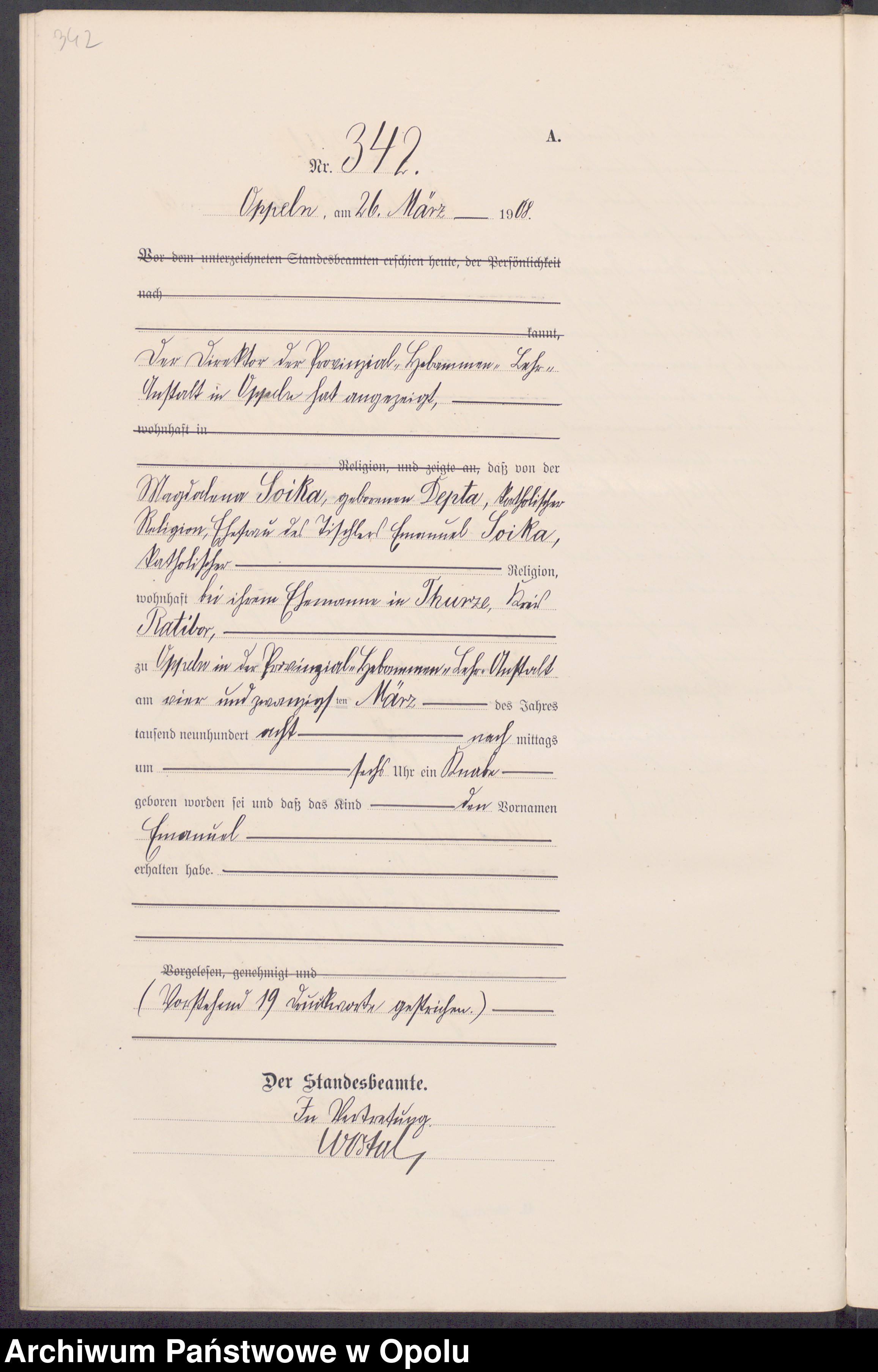 24.03.1908Birth certification on: