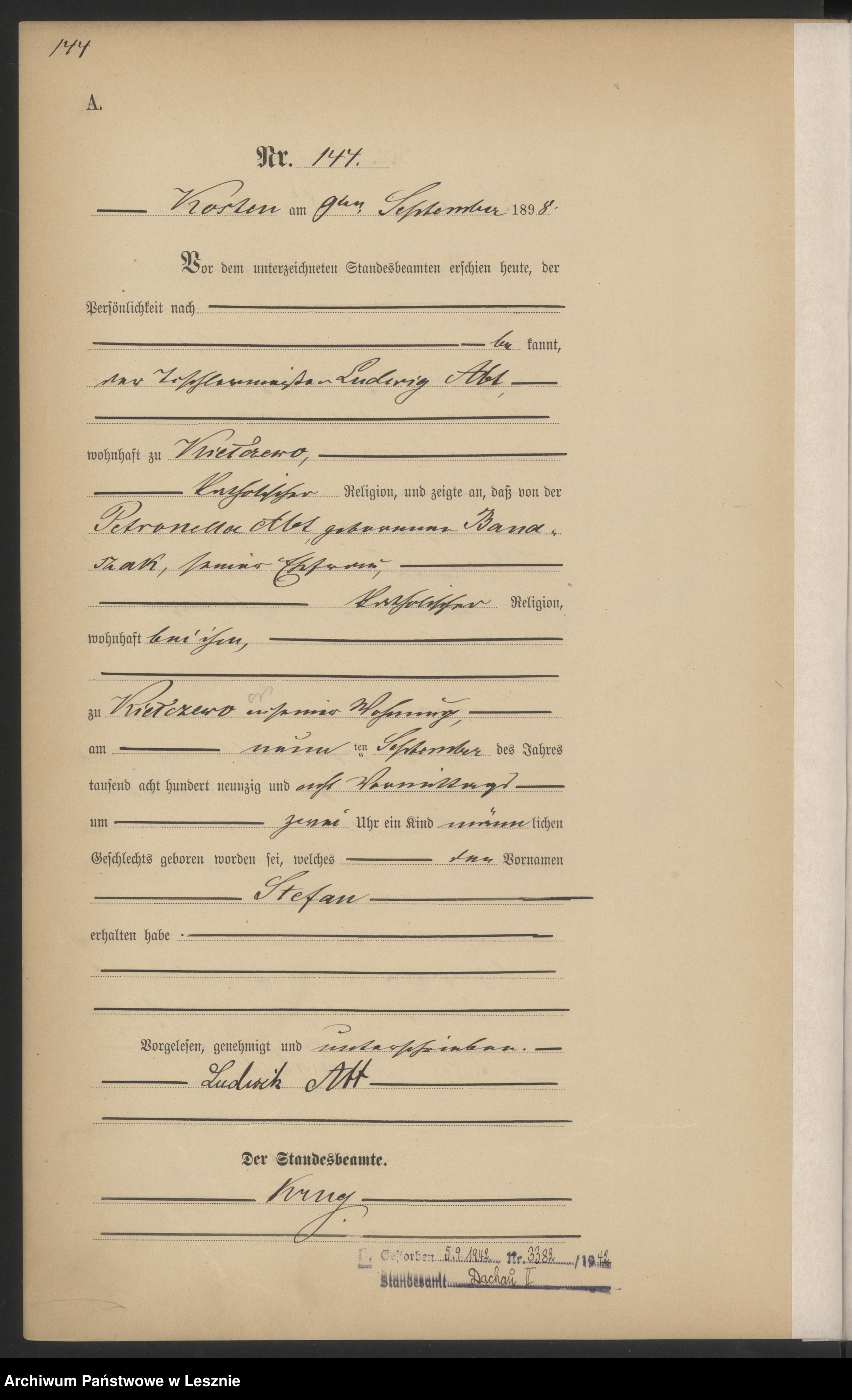 09.09.1898Skan aktu urodzenia na: