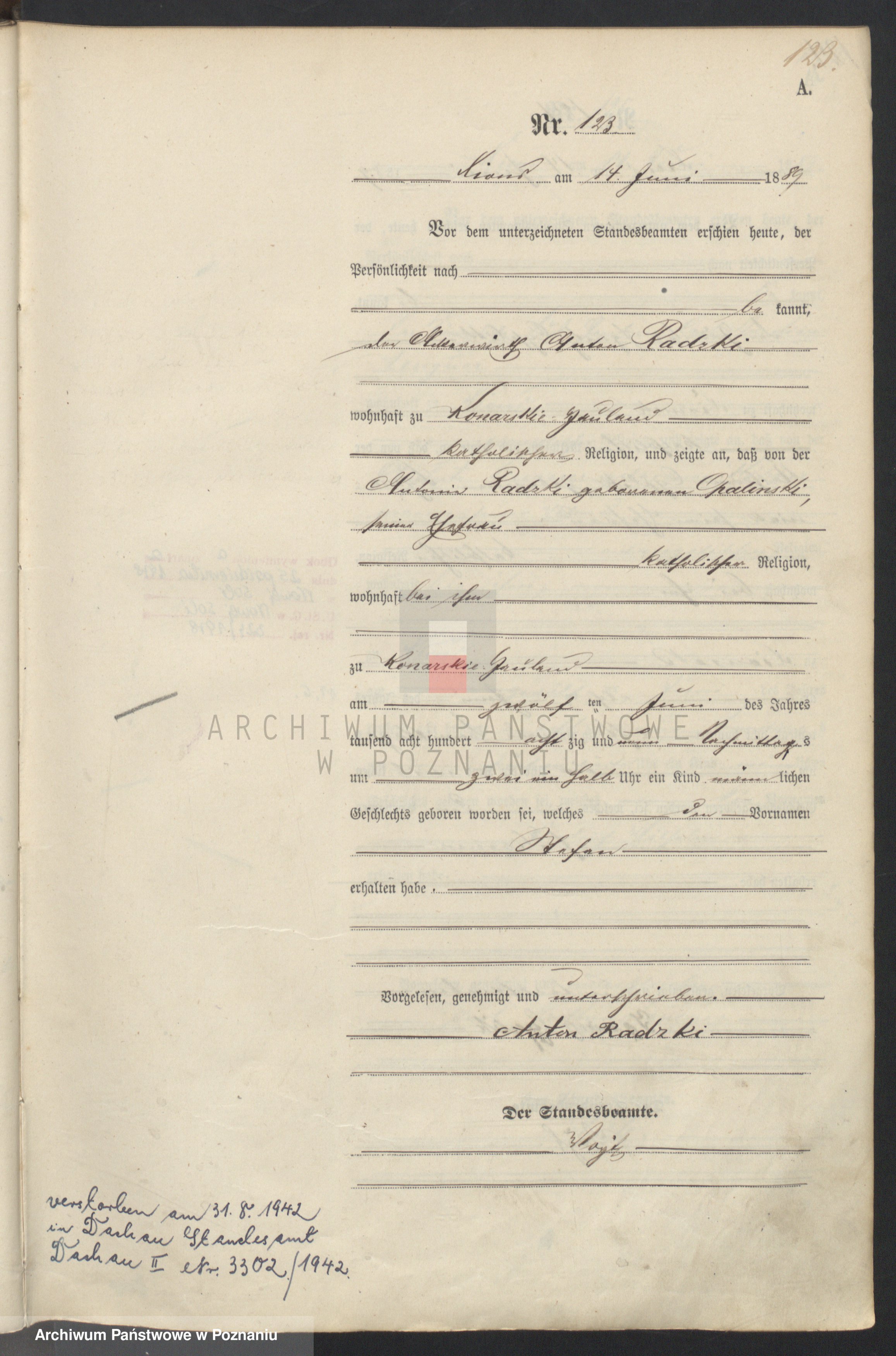 Stamtąd przewieziony do obozu koncentracyjnego KL Posen.