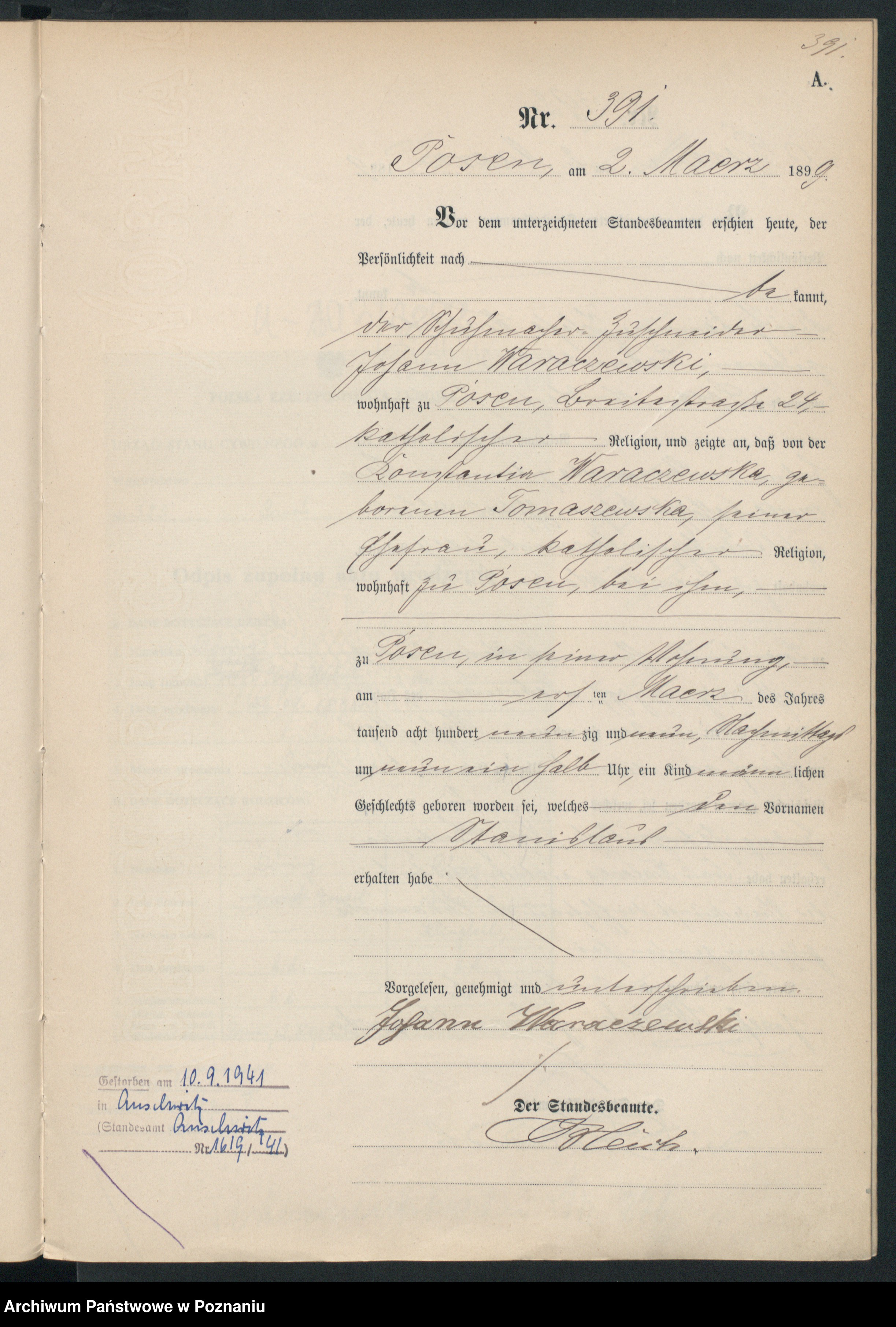kapelan — Poznańdziś: pow. Poznań miasto, woj. wielkopolskie, Polska