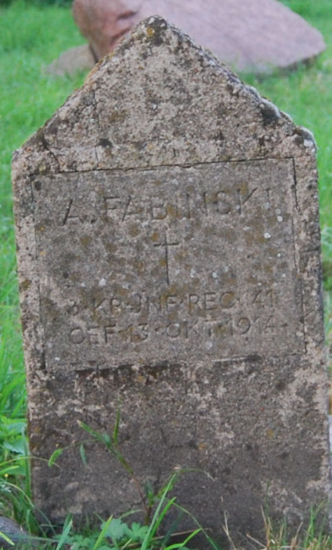 Wiadomo natomiast, że Polacy - jako uczestnicy zmagań z września 1914 r. - pochowani zostali na niewielkim placyku graniczącym z cmentarzem parafialnym. Pochodzili z ziemi grodzieńskiej i wileńskiej, a zatem najprawdopodobniej walczyli po stronie rosyjskiej. W 1914 r. miała miejsce kontroofensywa niemiecka rozpoczęta w sierpniu przez marsz. Hindenburga i gen. Ludendorffa, której kulminacyjnym punktem była bitwa pod Tanennbergiem 29.viii.1914 r. (na tych samych polach, na których ponad 500 lat wcześniej król Jagiełło złamał potęgę zakonu krzyżackiego - pod Grunwaldem!!). Po klęsce armia rosyjska przeszła – przynajmniej na północnej części frontu – do defensywy. Zaczęła się tzw. „zimna wojna”, wojna niewielkich starć na całej długiej linii frontu, w trakcie której wojska carskie stracić miały ok. 190 tys. żołnierzy.