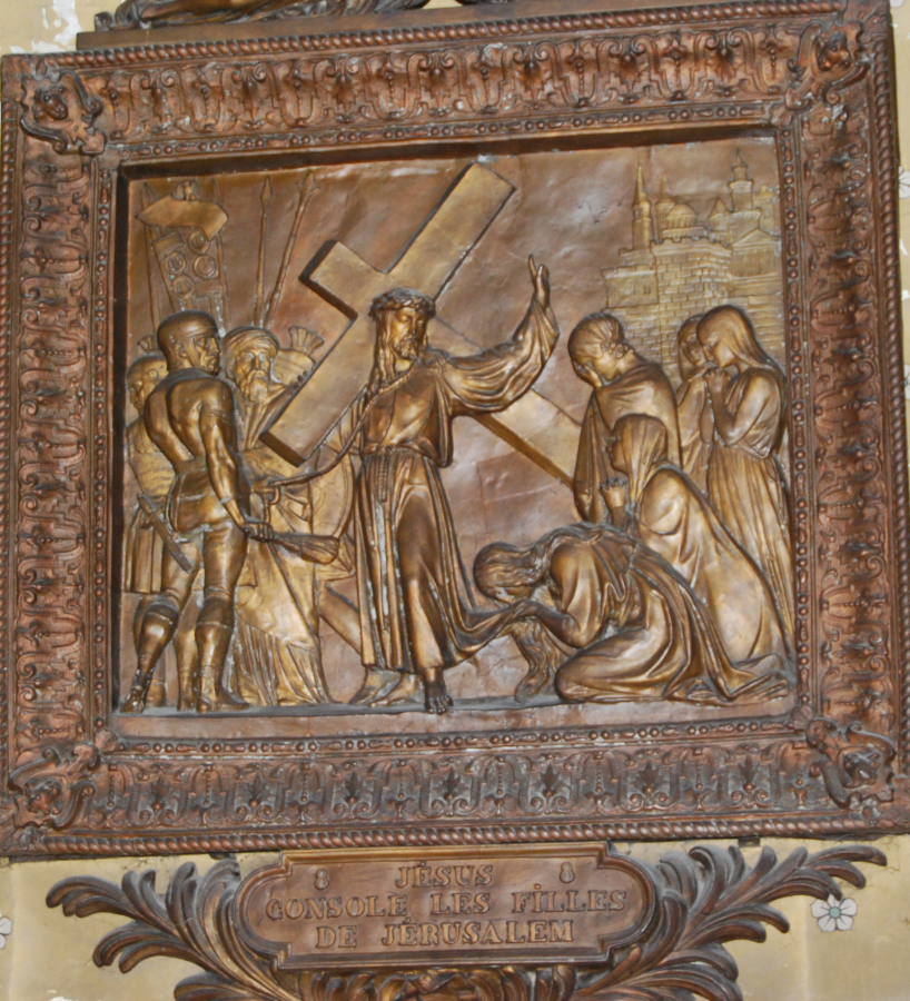 Wśród tłumu, który towarzyszy Jezusowi, jest grupa kobiet z Jerozolimy: znają Go. Widząc Jezusa w tym położeniu, mieszają się w tłum i podążają w stronę Kalwarii. Płaczą.