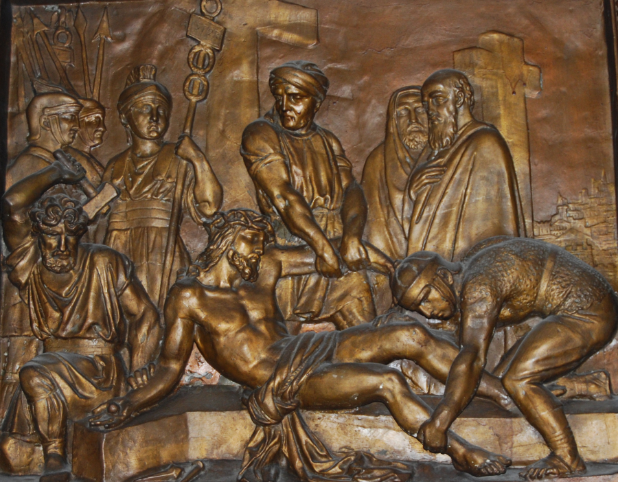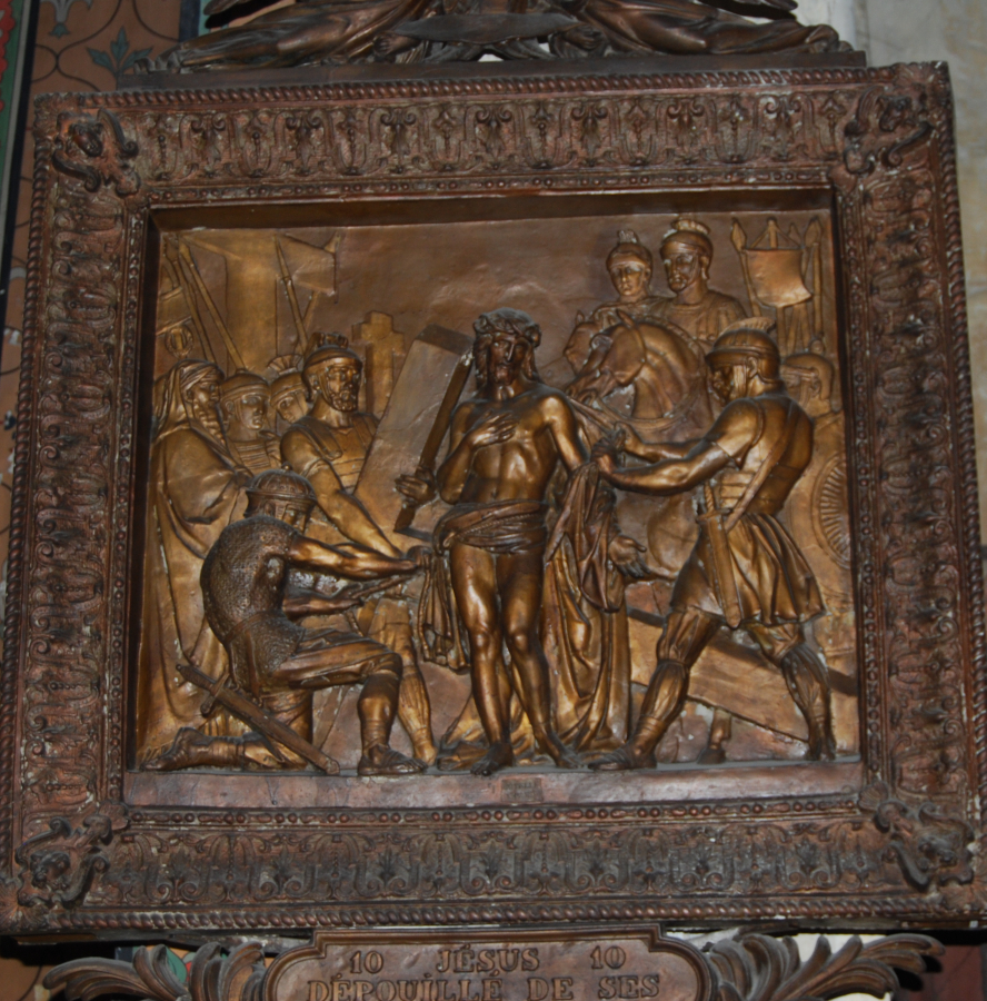 Jezus jest w rękach żołnierzy. Jak każdy skazany, zostaje rozebrany, dla upokorzenia i zrównania z niczym. Obojętność, pogarda i lekceważenie dla ludzkiej godności łączą się z zachłannością, pożądliwością i osobistym interesem. „Wzięli szaty Jezusa”.