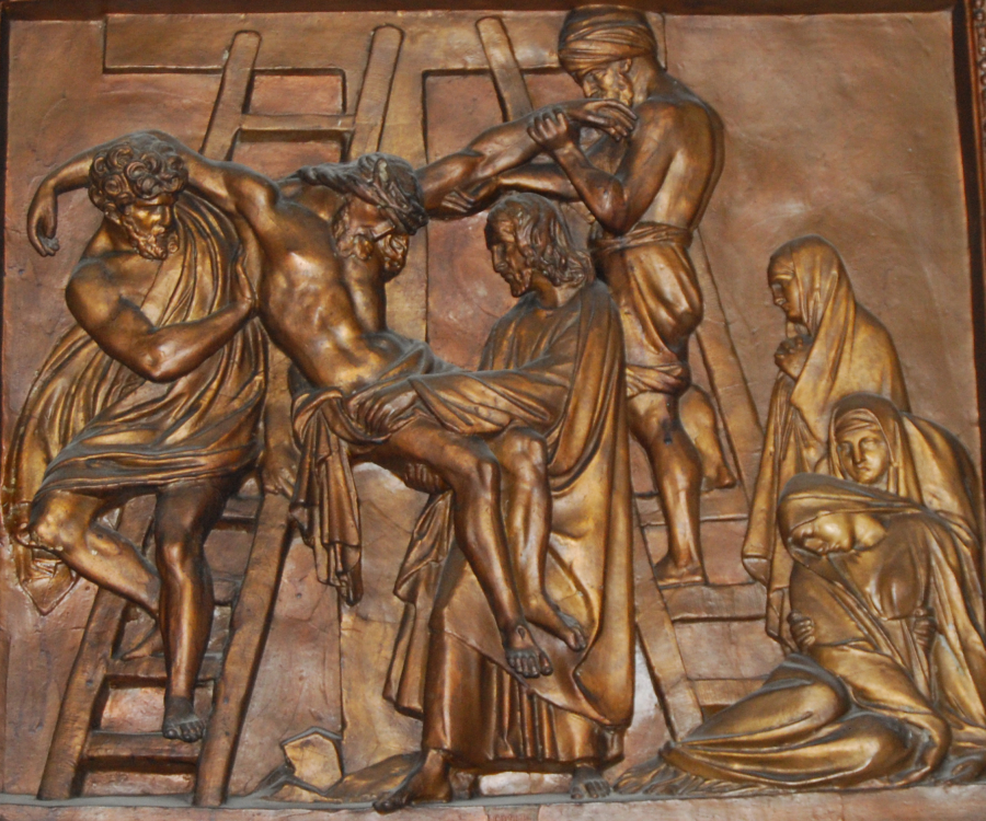 „Potem Józef z Arymatei, który był uczniem Jezusa, lecz krył się z tym z obawy przez Żydami, poprosił Piłata, aby mógł zabrać ciało Jezusa. A Piłat zezwolił. Poszedł więc i zabrał ciało Jezusa.”J 19, 38
