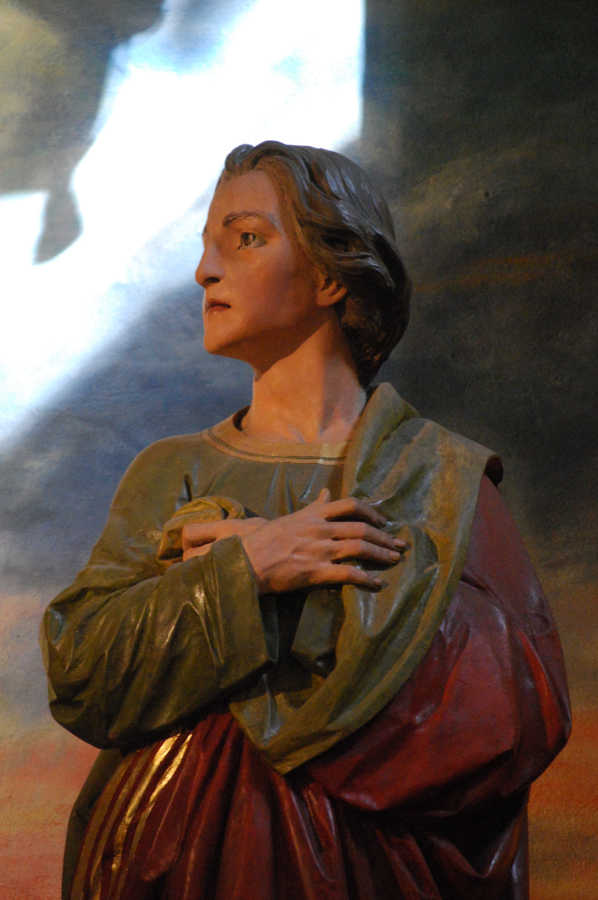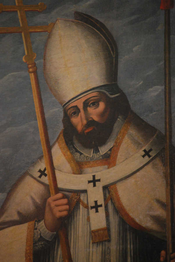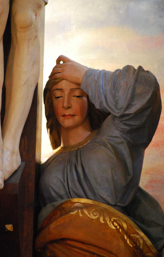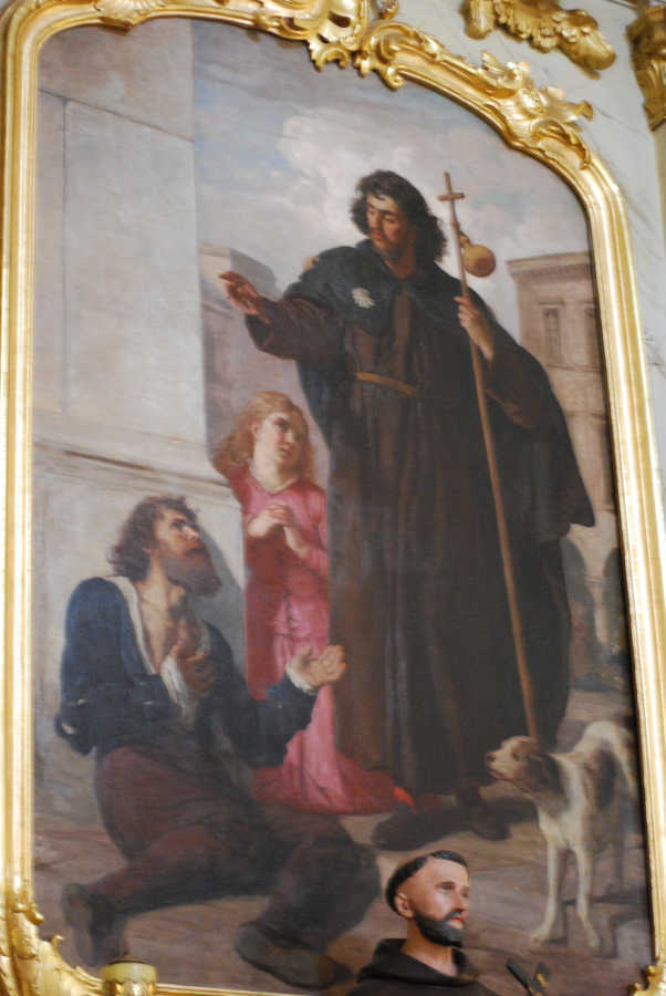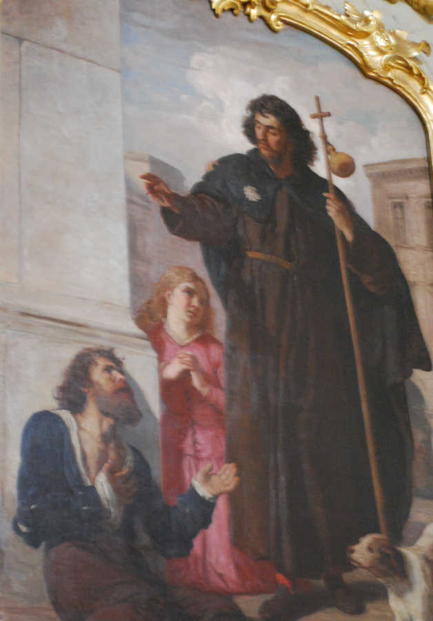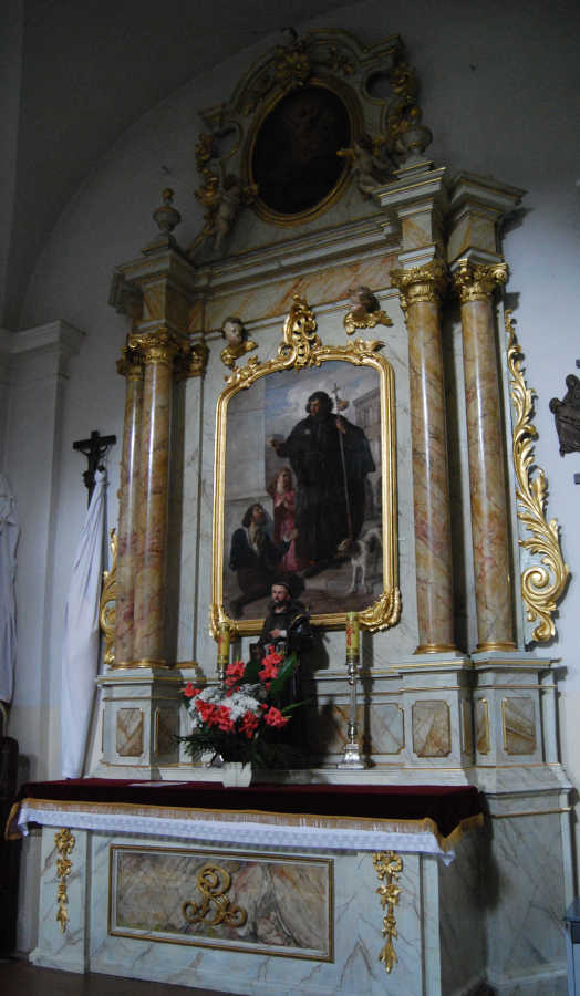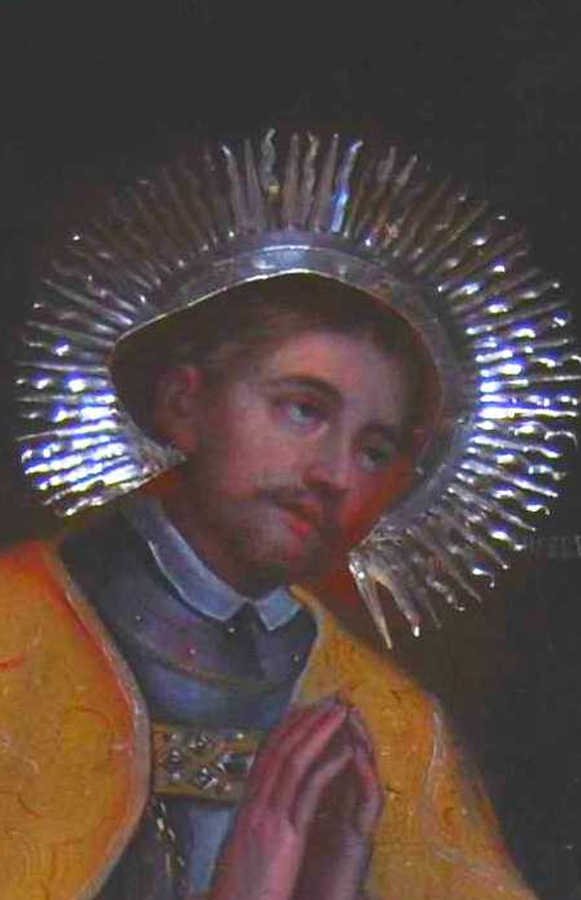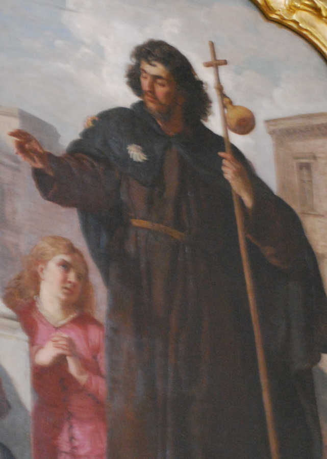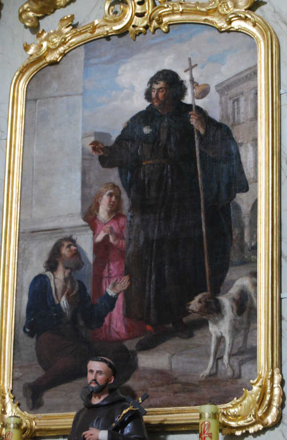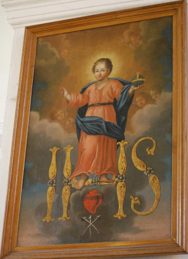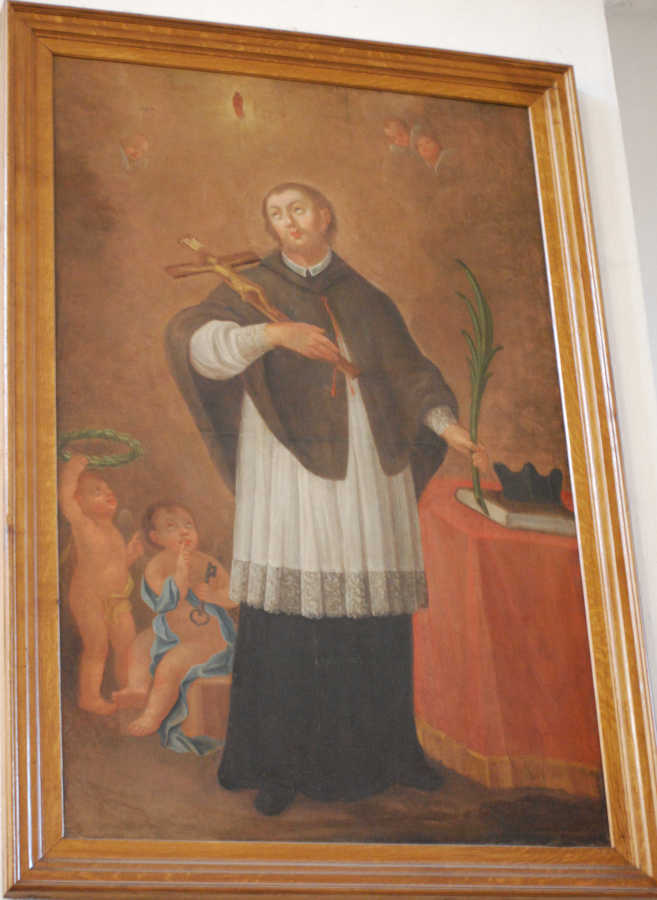 w lunecie wnęki zewnętrznej ściany kościoła, w ozdobnym kartuszu, znajduje się owalny obraz