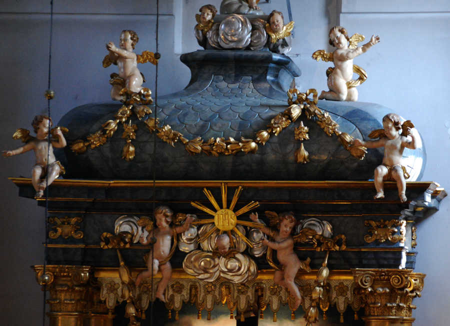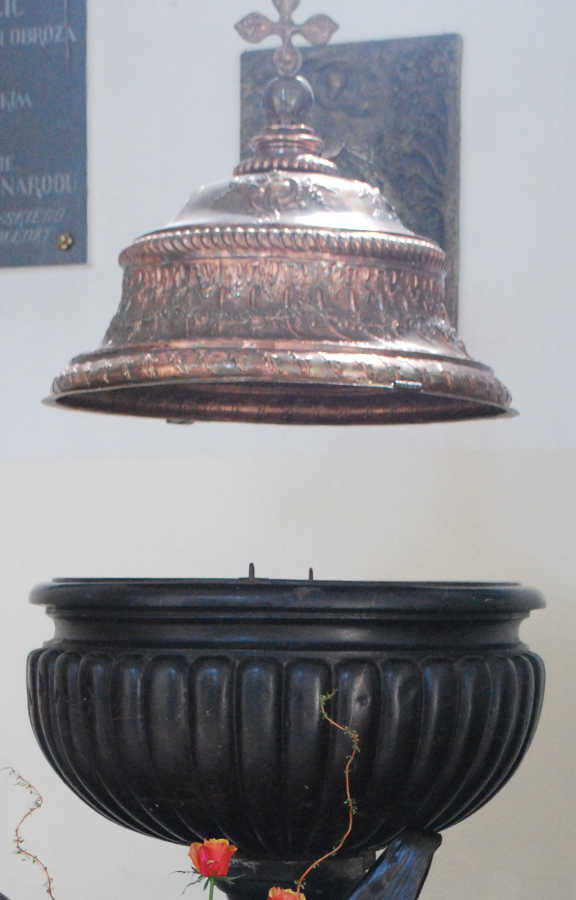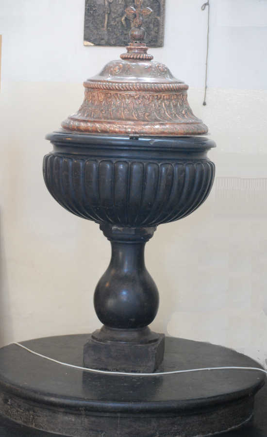 - opis: XVIII w., barok, z czarnego marmuru, pokrywa z mosiądzu, wysokość 109 cm