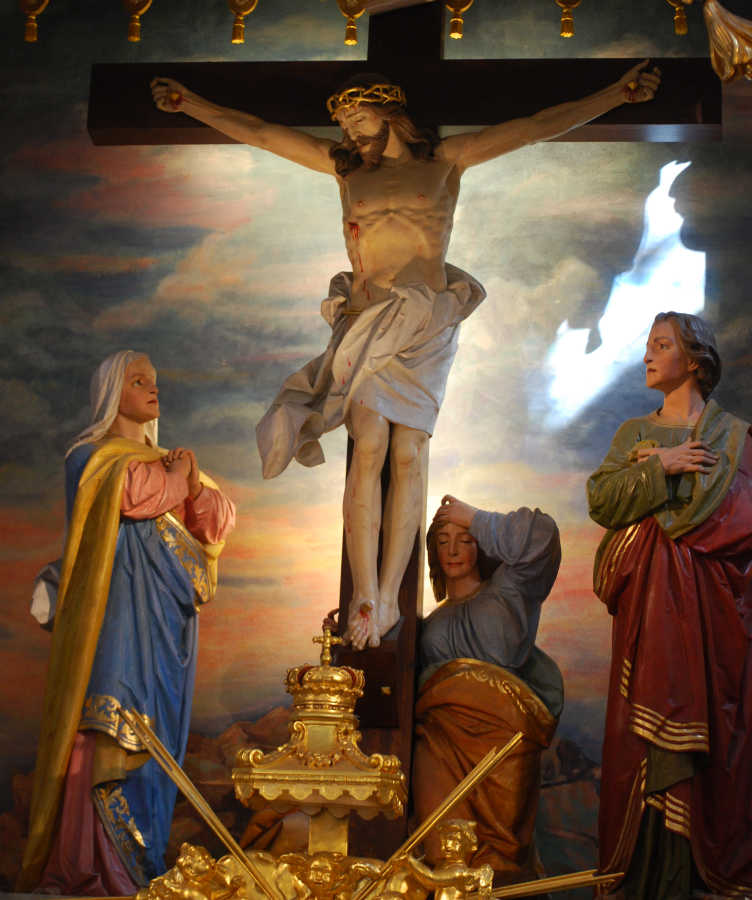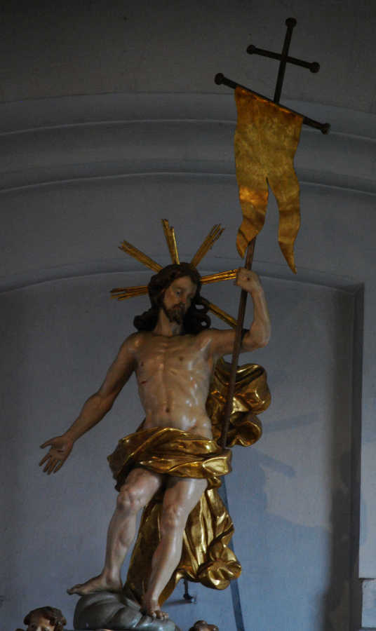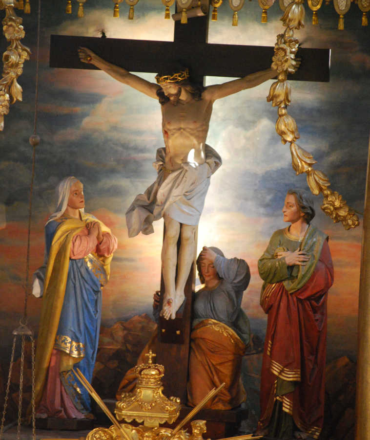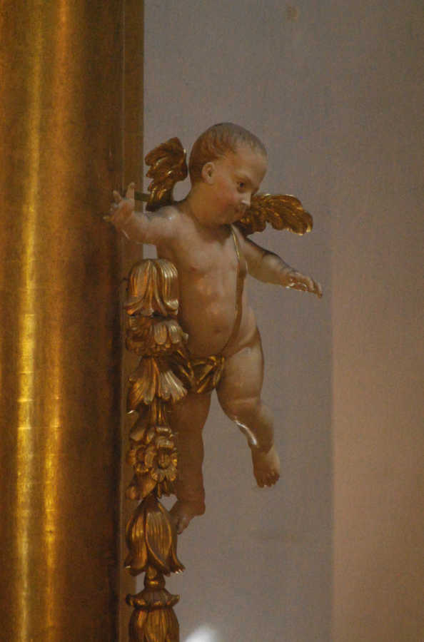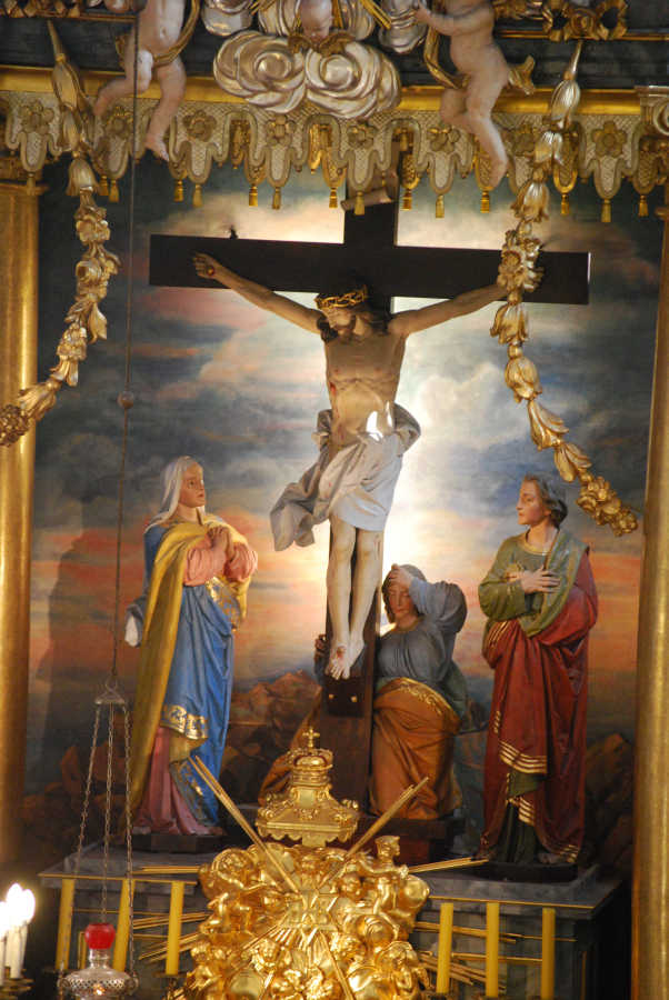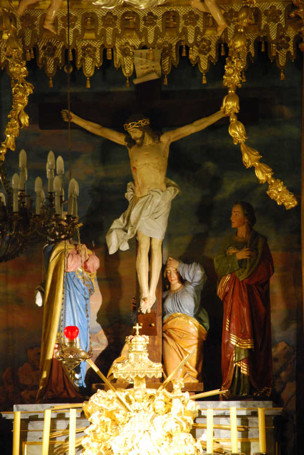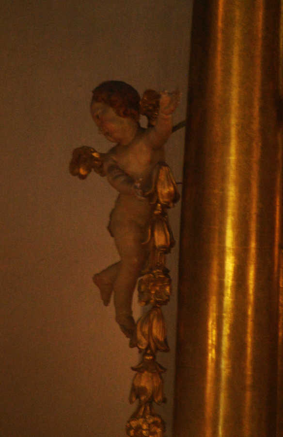 wykonany w drewnie, złocony, o wysokości ok. 8 m i szerokości 430 cm