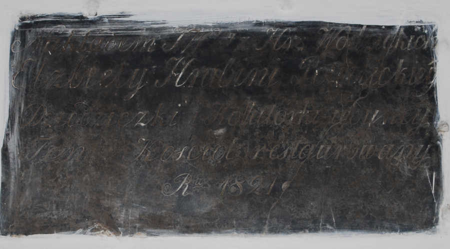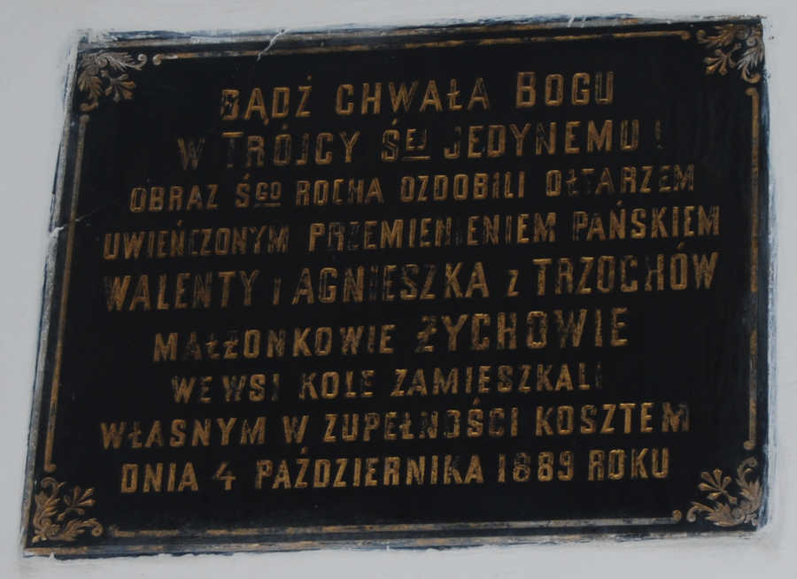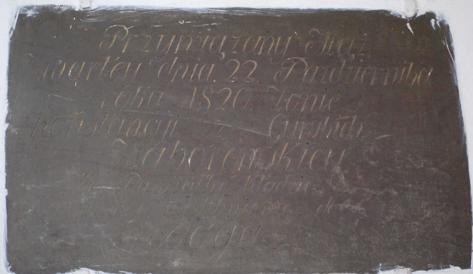 Interesująca jest też tablica upamiętniająca remont kościoła w 1821 r.:
